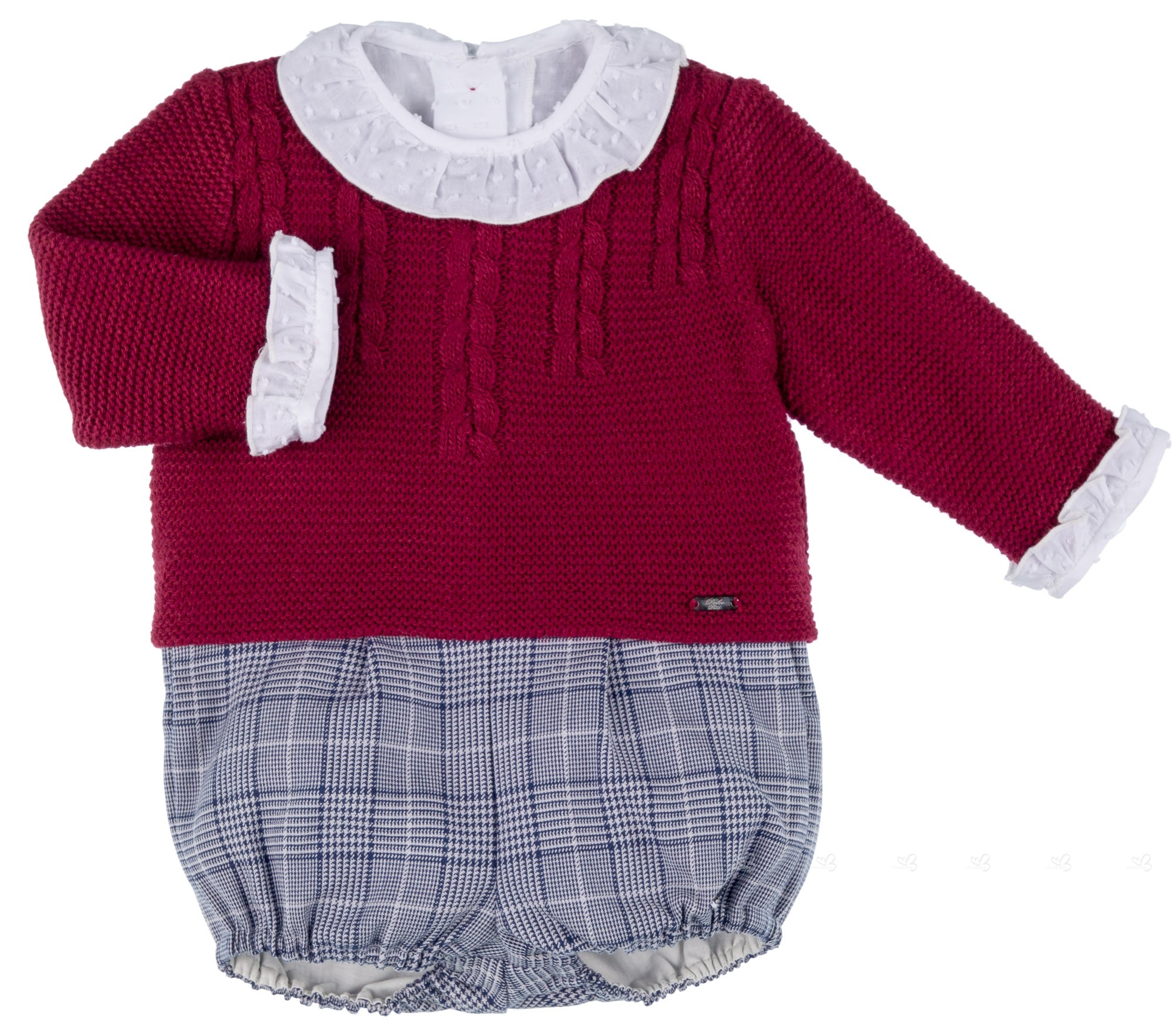- Conjunto Niña Jersey Granate Blusa Plumeti & Bombacho Cuadros Marino de Dolce Petit