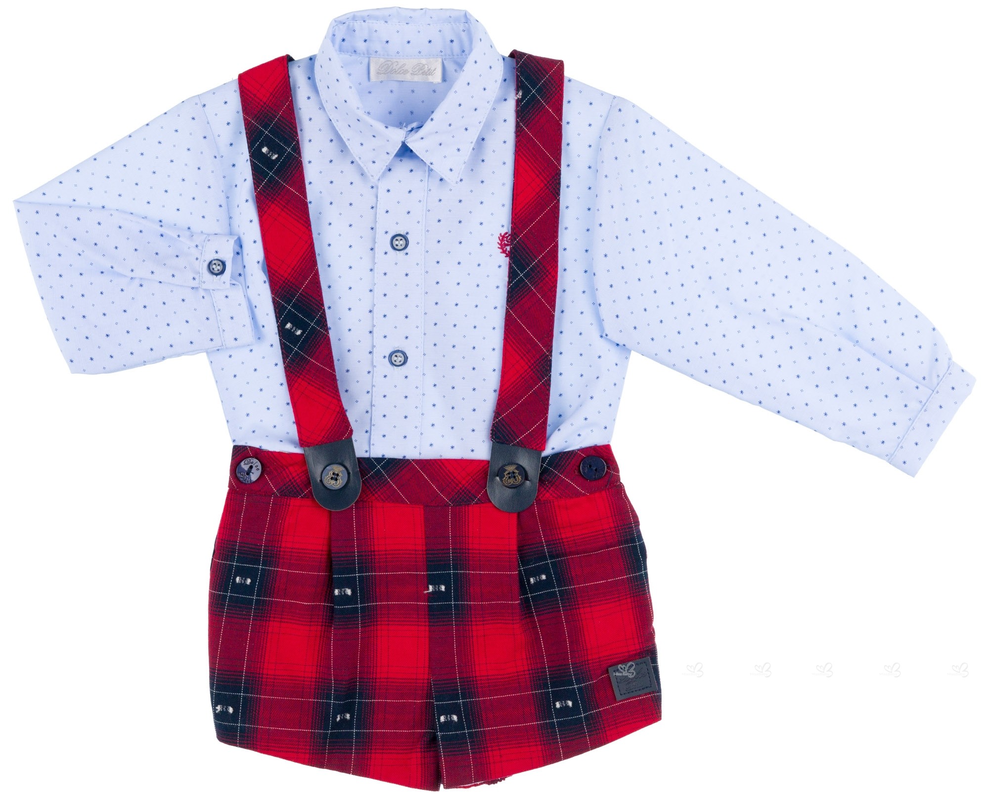 - Conjunto Niño Camisa Azul & Short Tartán Rojo de Dolce Petit