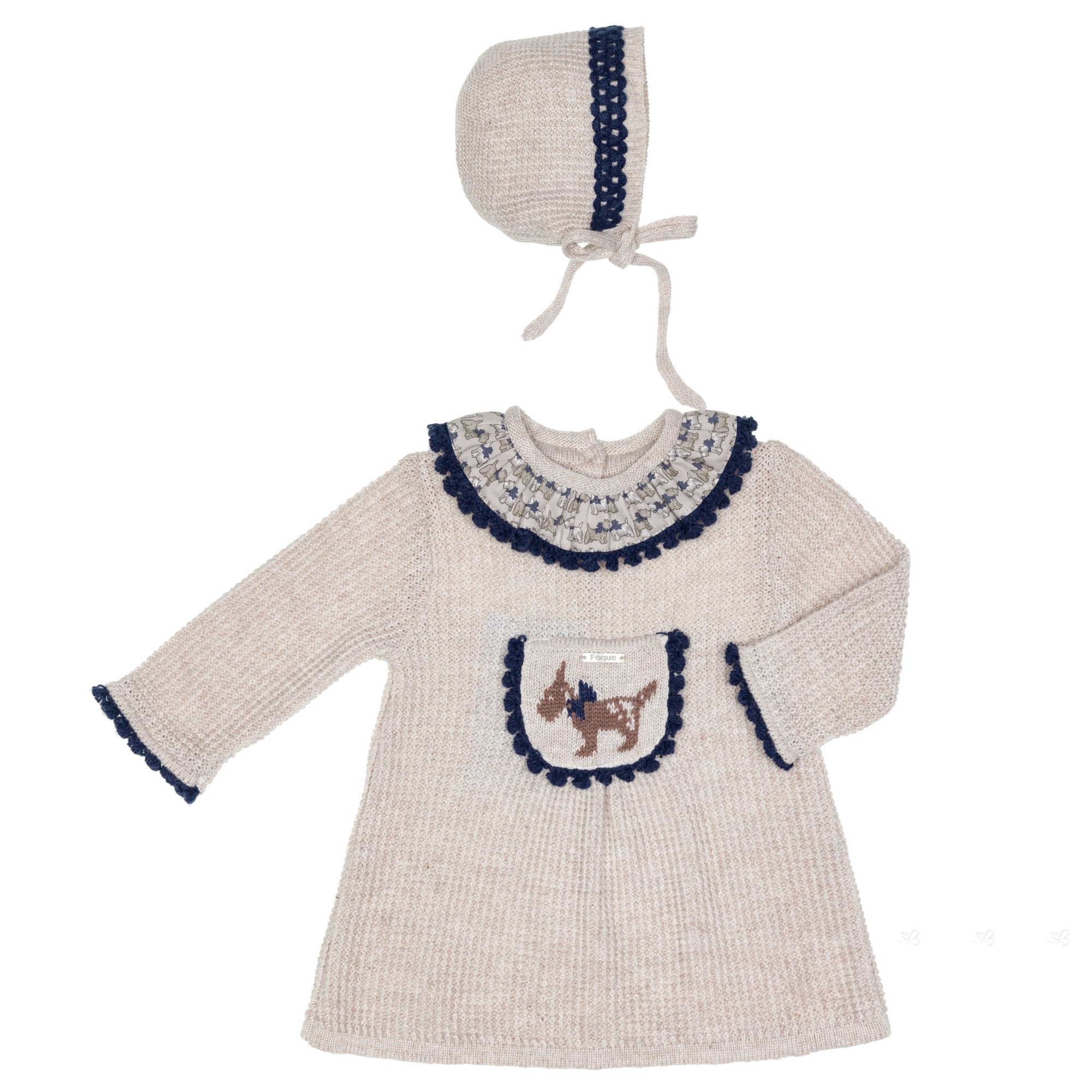 Baby Beige & Navy Blue Dog 2 Piece Dress Set