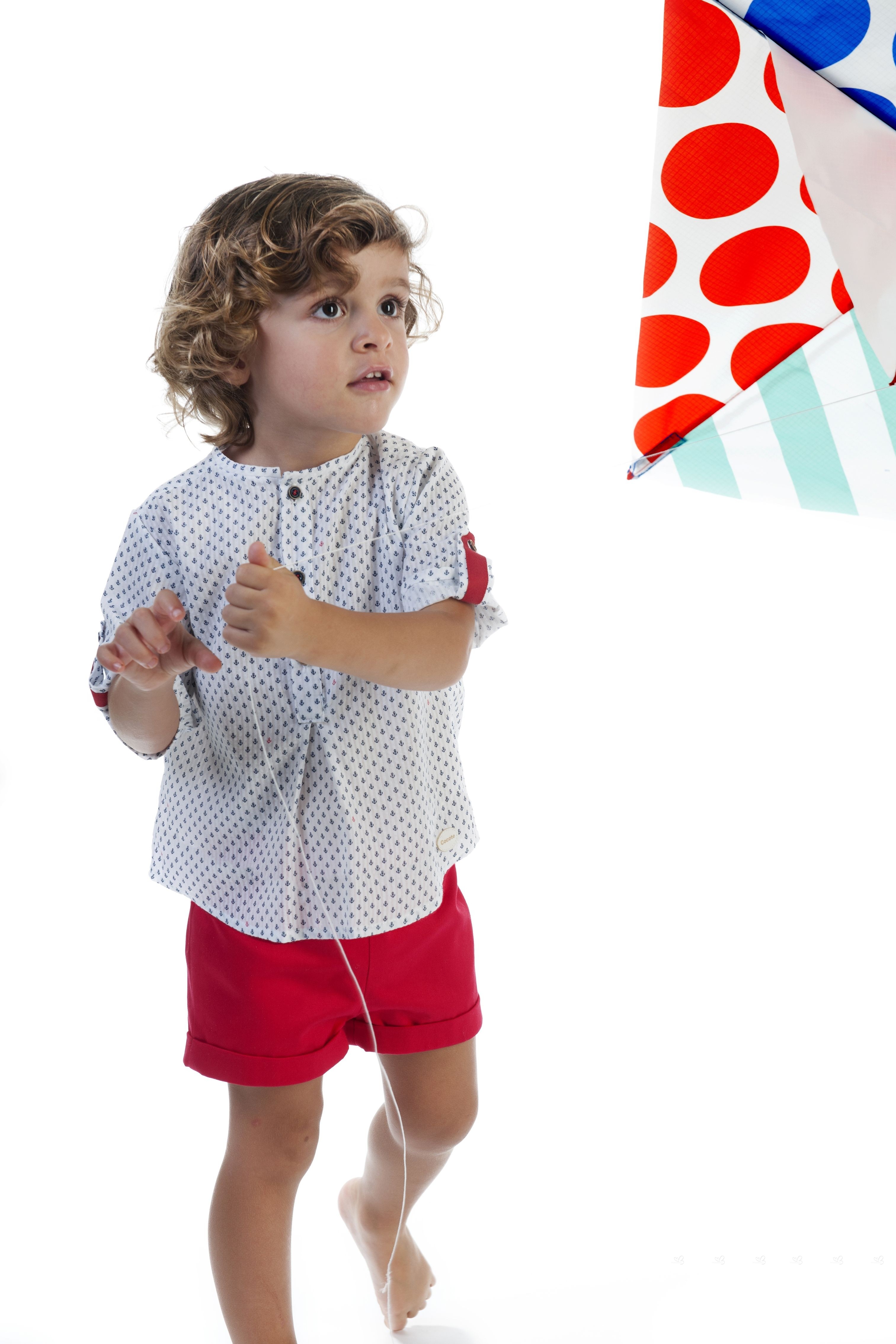 Cocote Spring-Summer 2018 Collection. Baby boys white anchor shirt and red shorts set.