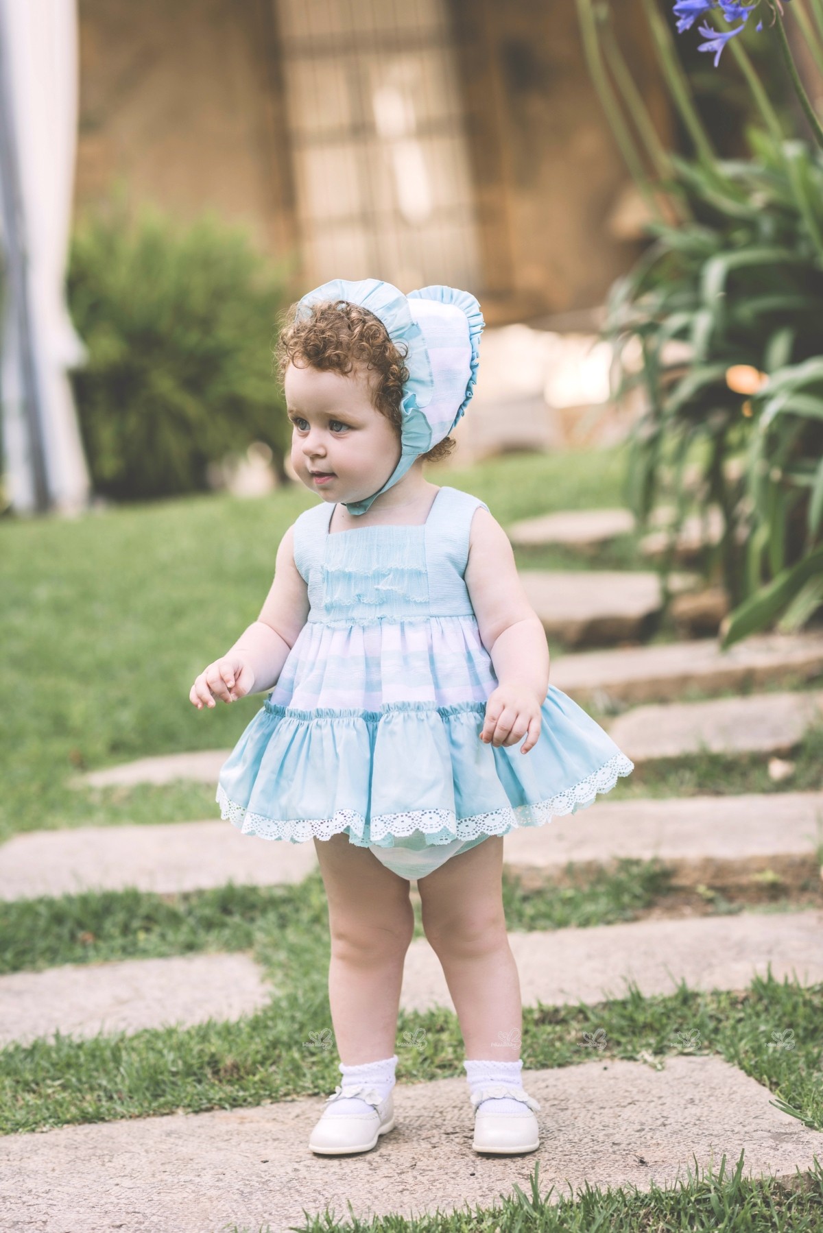 Dolce Petit Spring-Summer 2018 Collection. Baby girls aqua green 3 piece dress set.