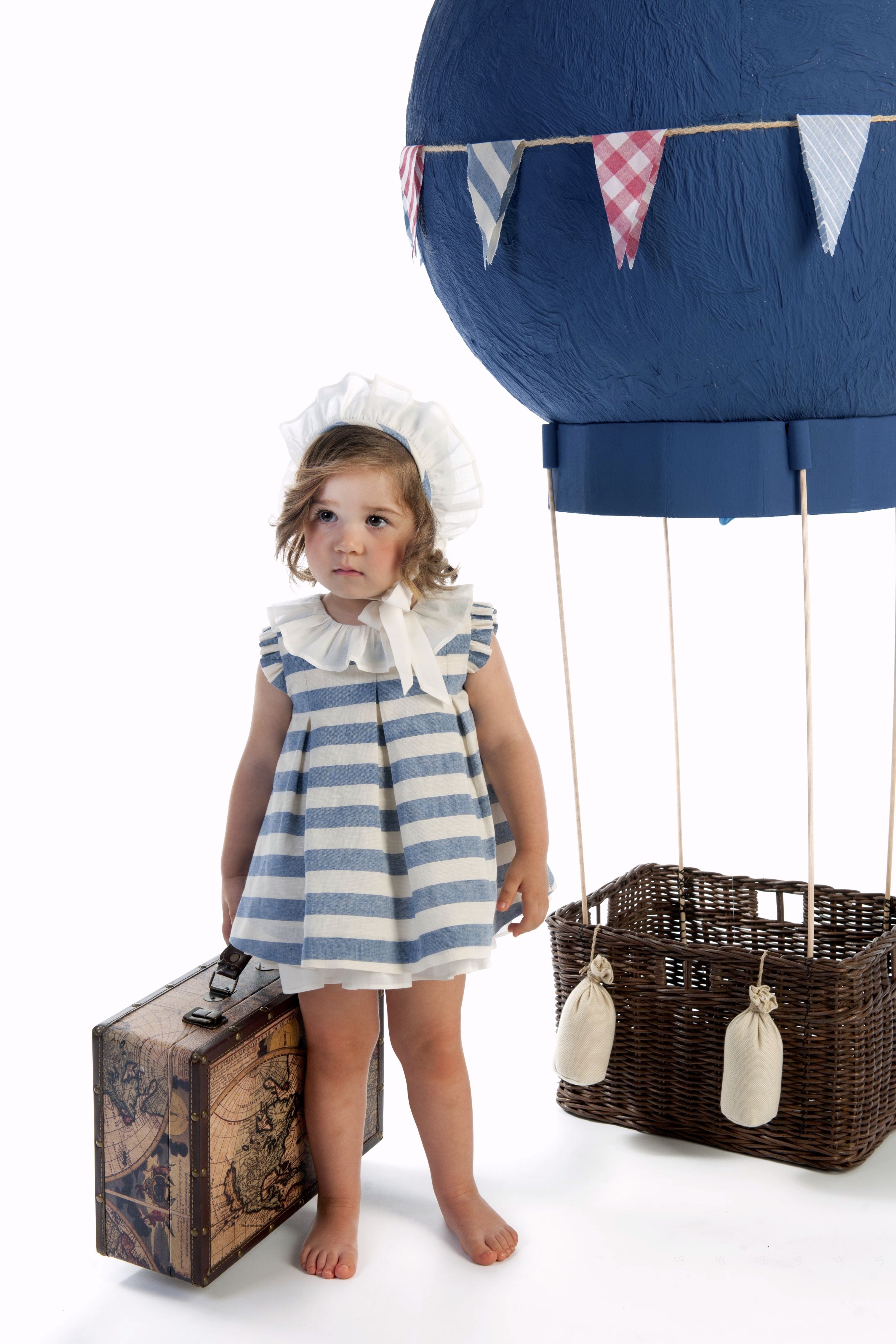 Cocote Spring-Summer 2018 Collection. Baby girls blue and white 3 piece dress set.