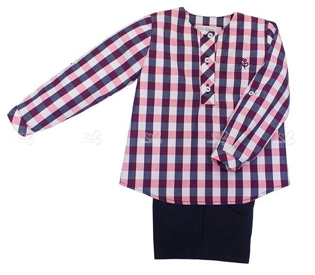 Boys Navy Blue Checked Shirt & Shorts Set