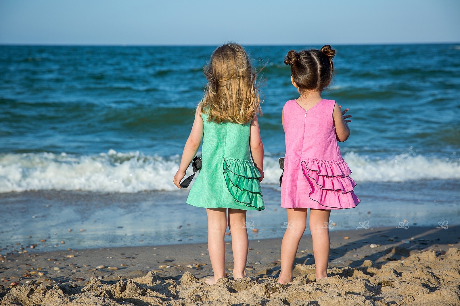 Rochy. Spring Summer 2019 Collection. Girls green linen ruffle dress with black bow.