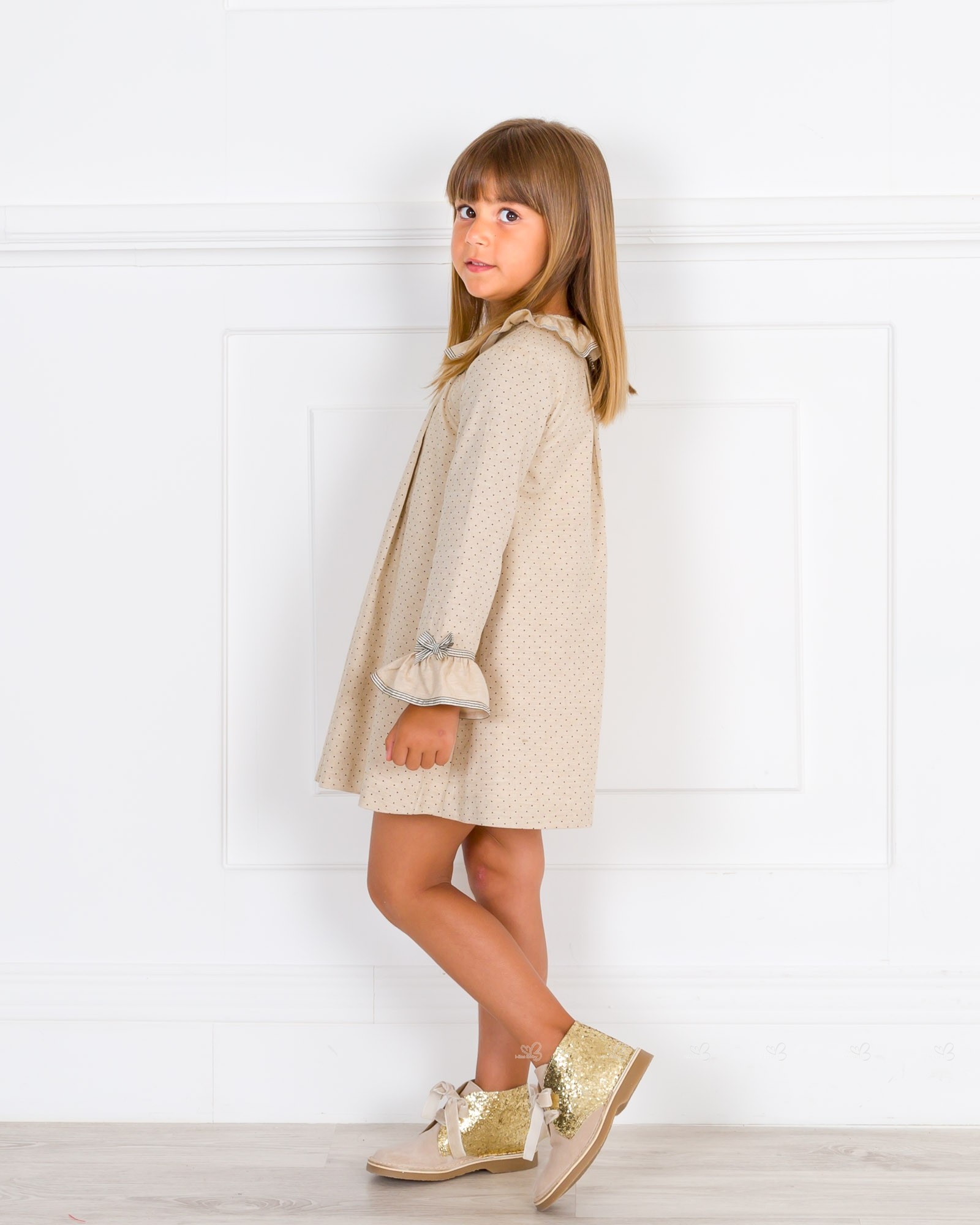 Girls Beige Polka Dot Dress & Glitter Boots Outfit