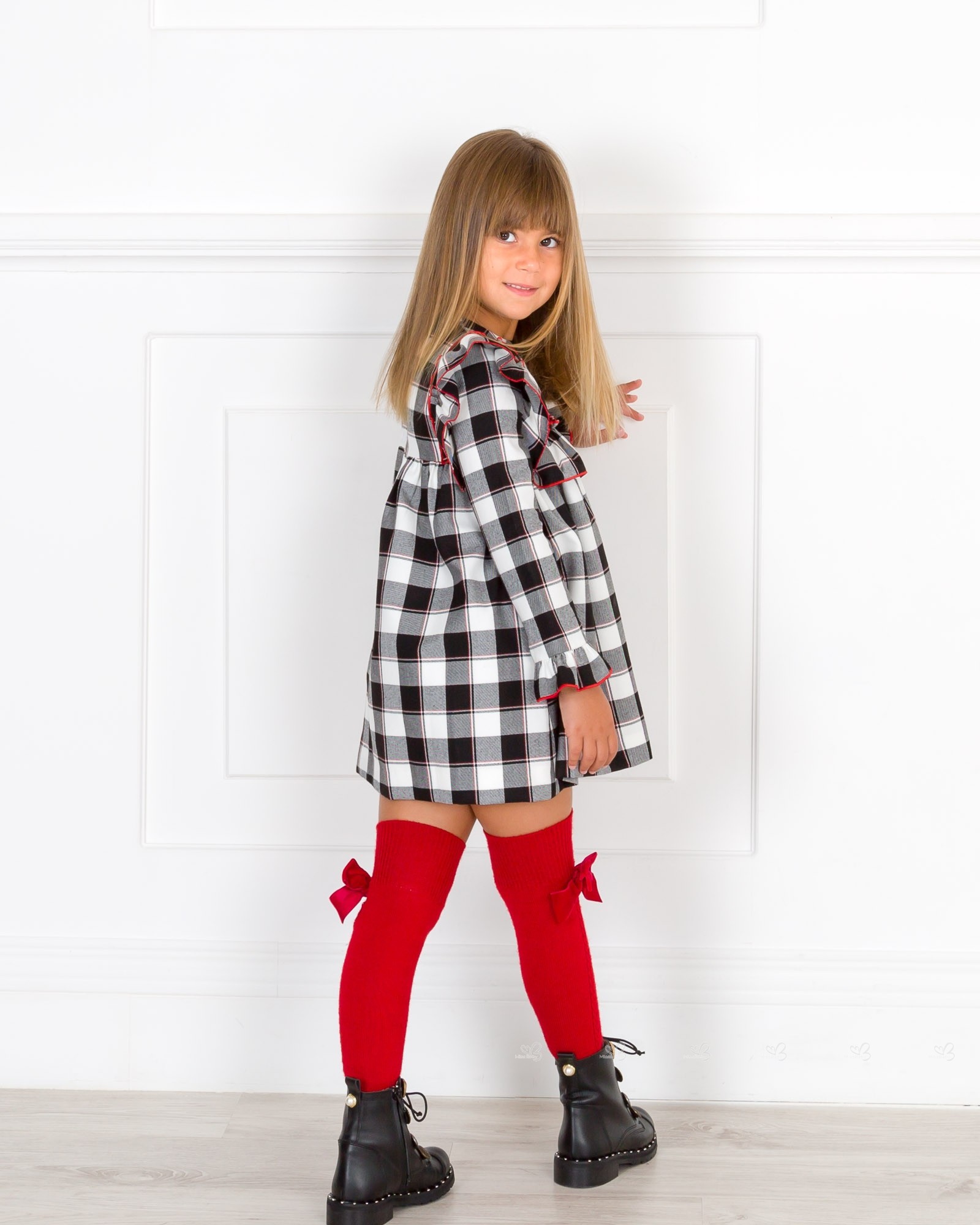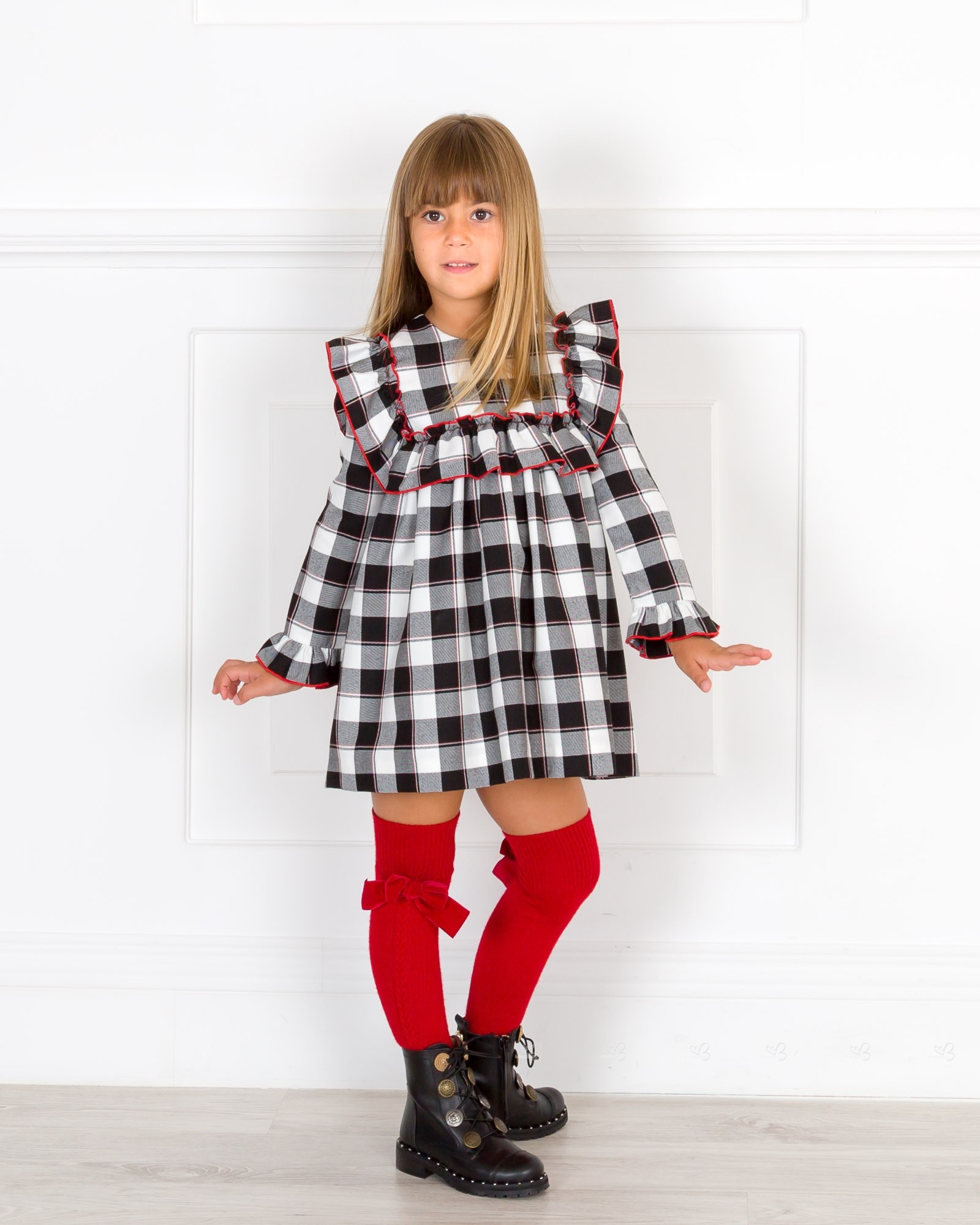Girls Black & White Checked Dress Collection Outfit
