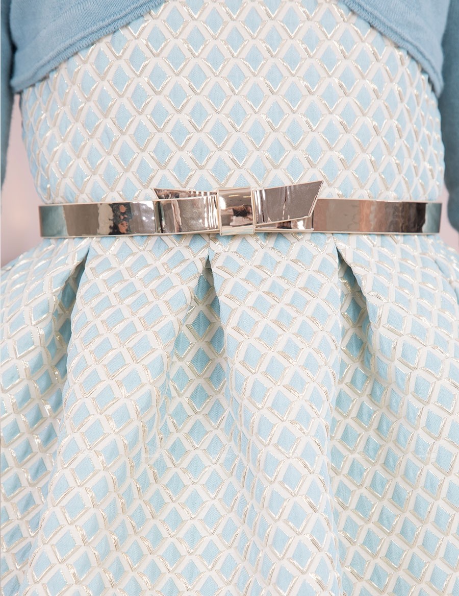 Girls Blue & Golden Geometric Jacquard Print Dress