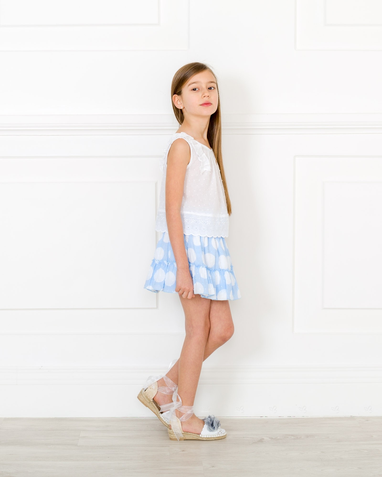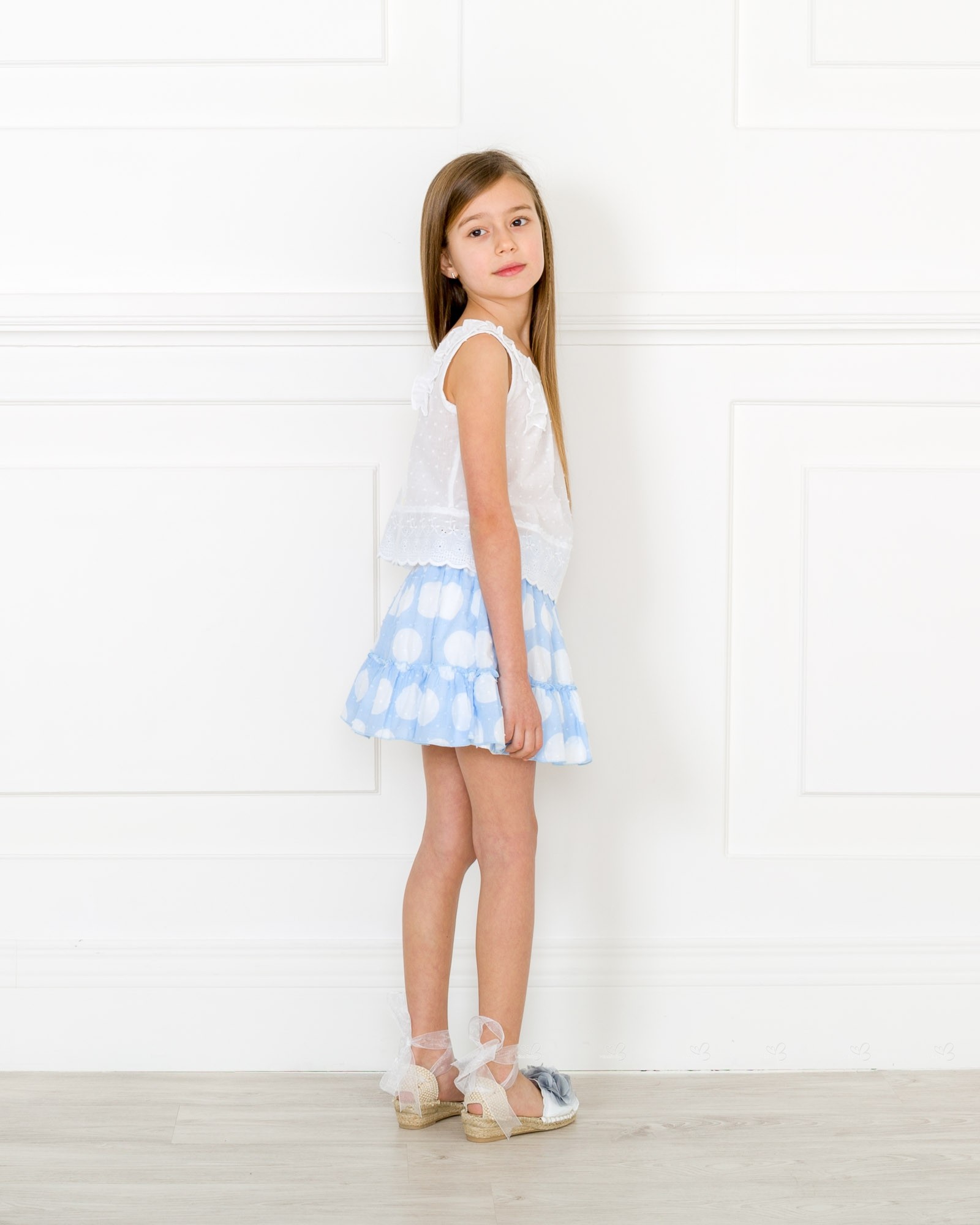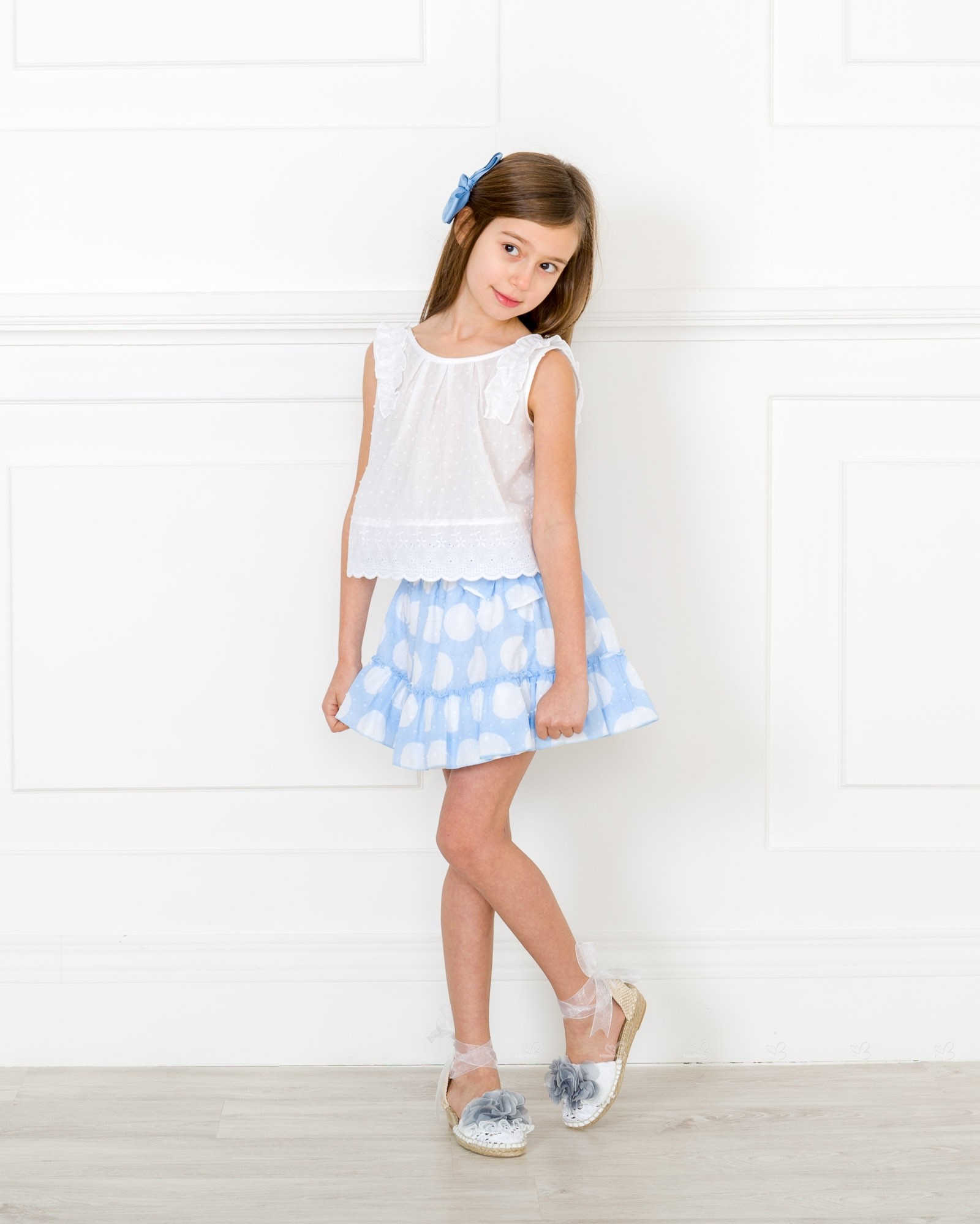 Dolce Petit Spring-Summer 2018 .Girls blue and white 2 piece skirt set.