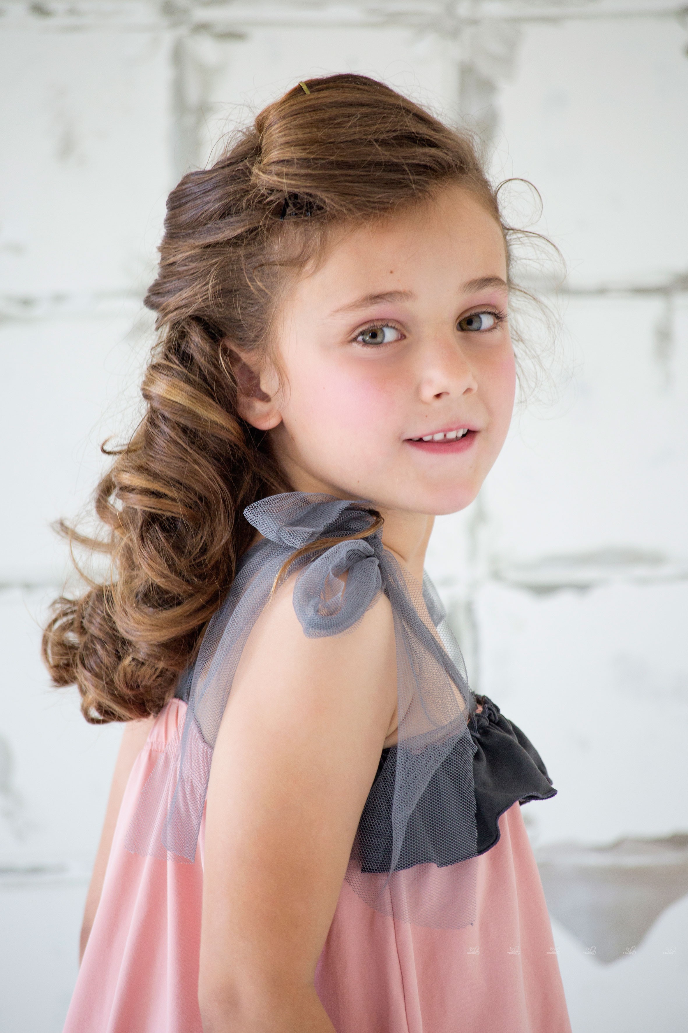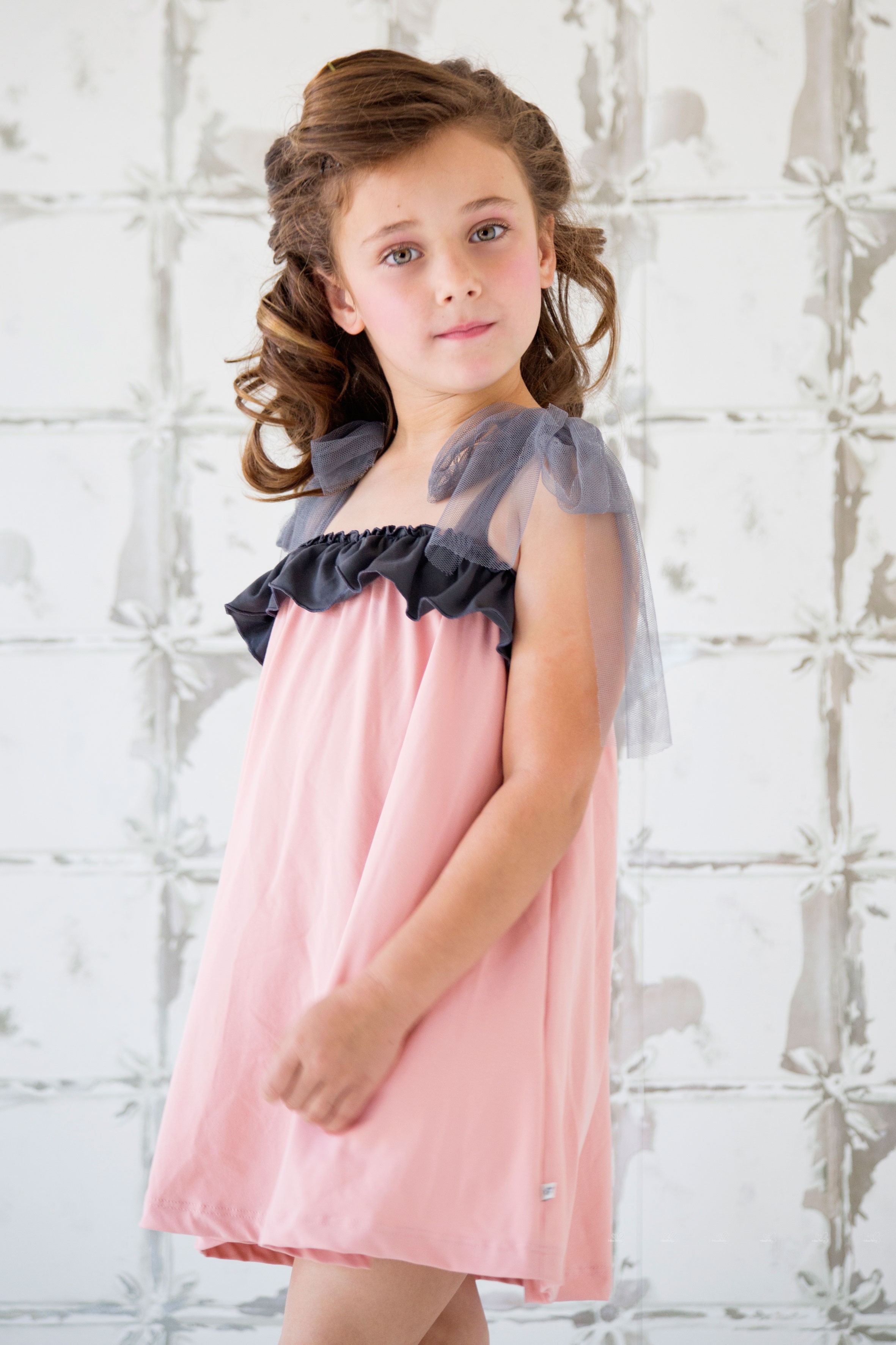 Girls Blush Pink Beach Dress with Gray Tulle Straps