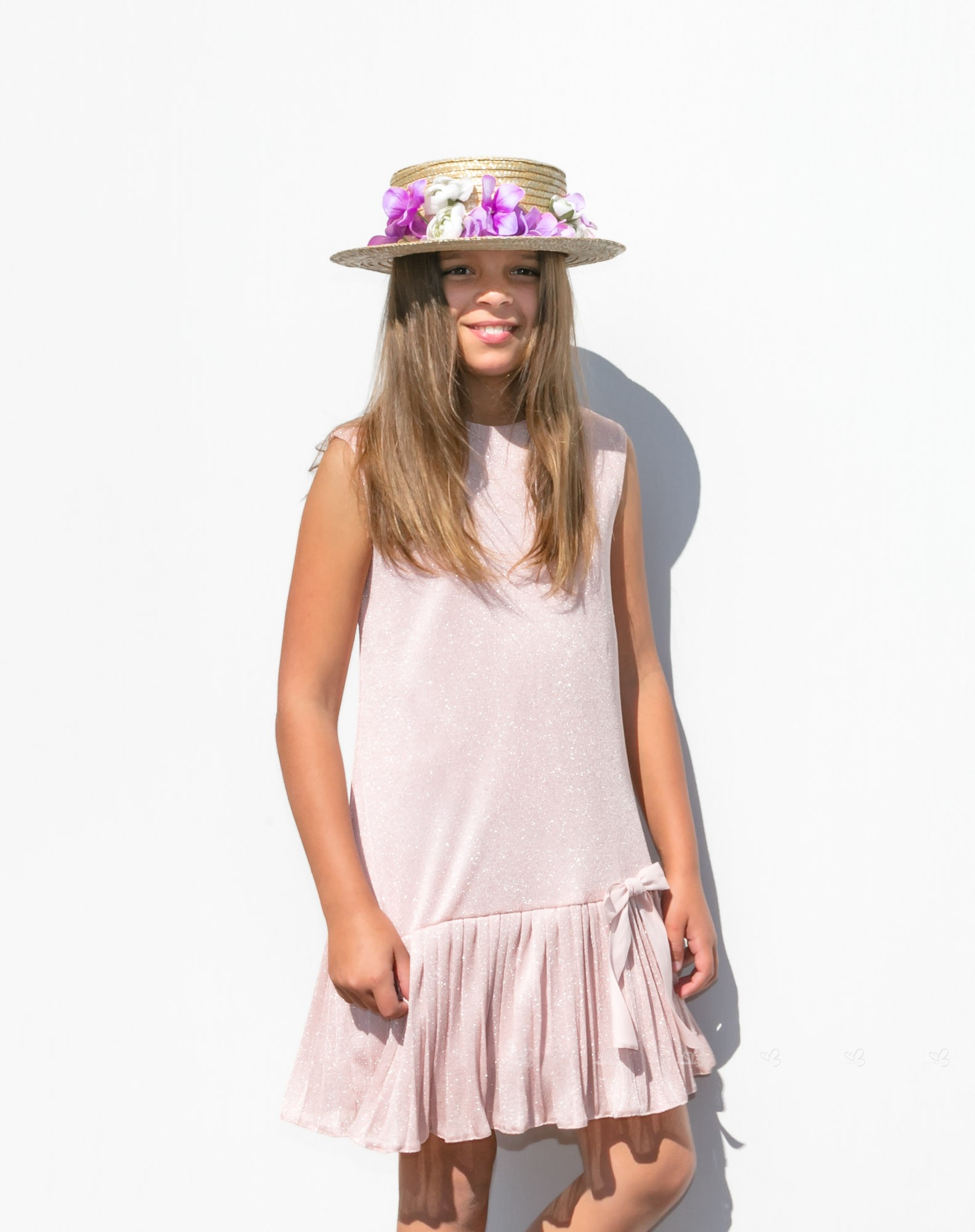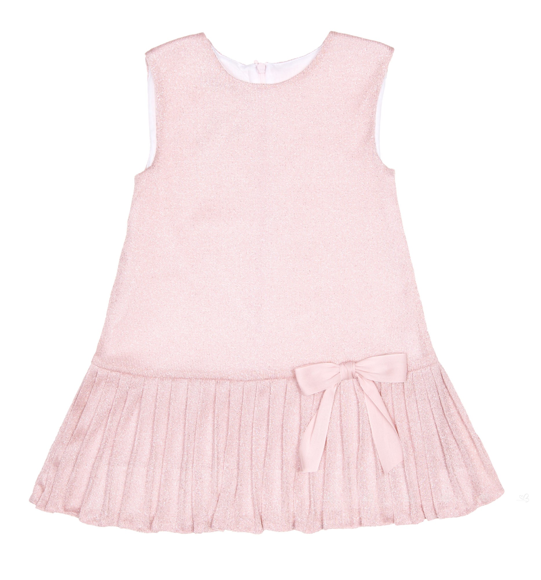 Girls Blush Pink & Silver Pleated Jersey Dress