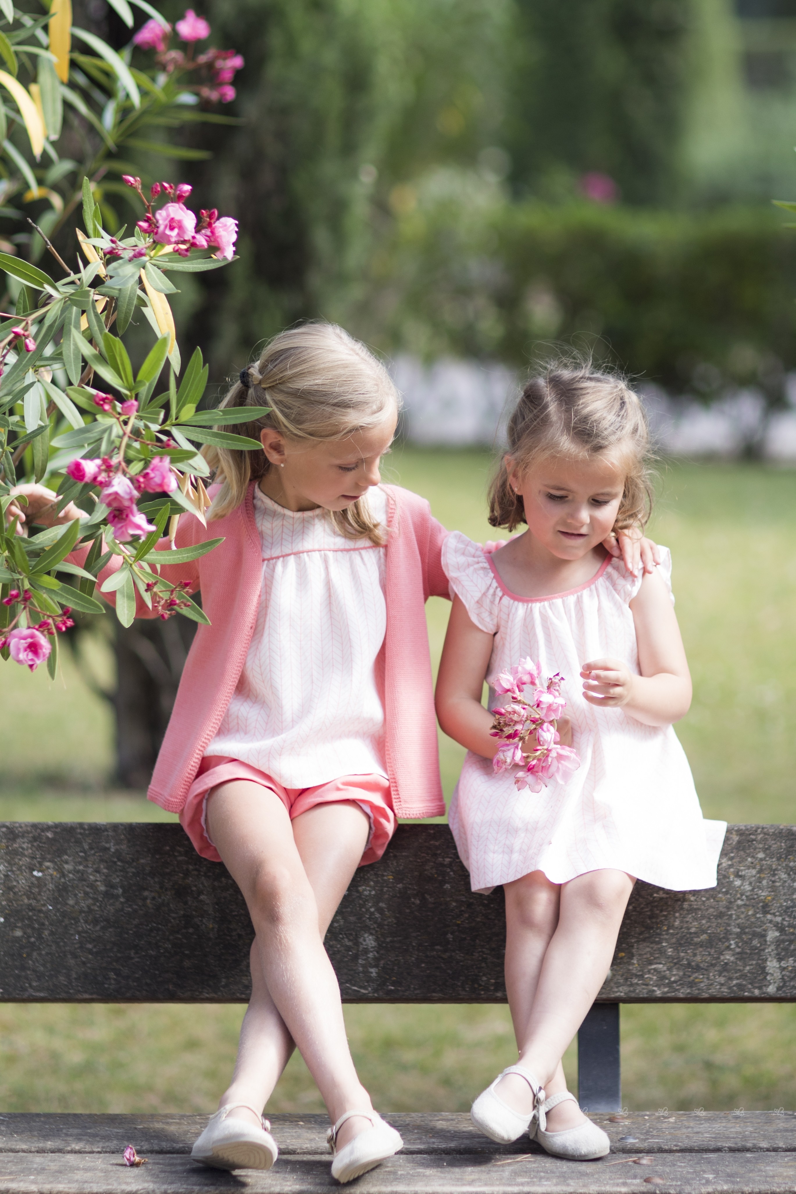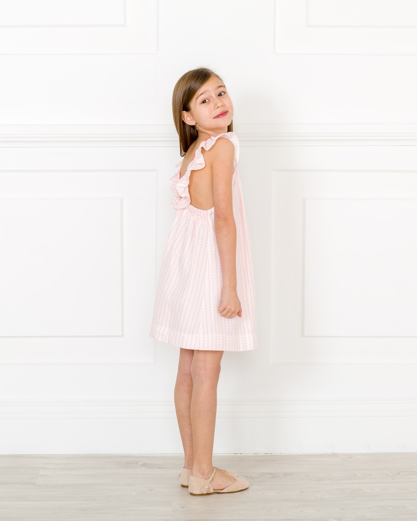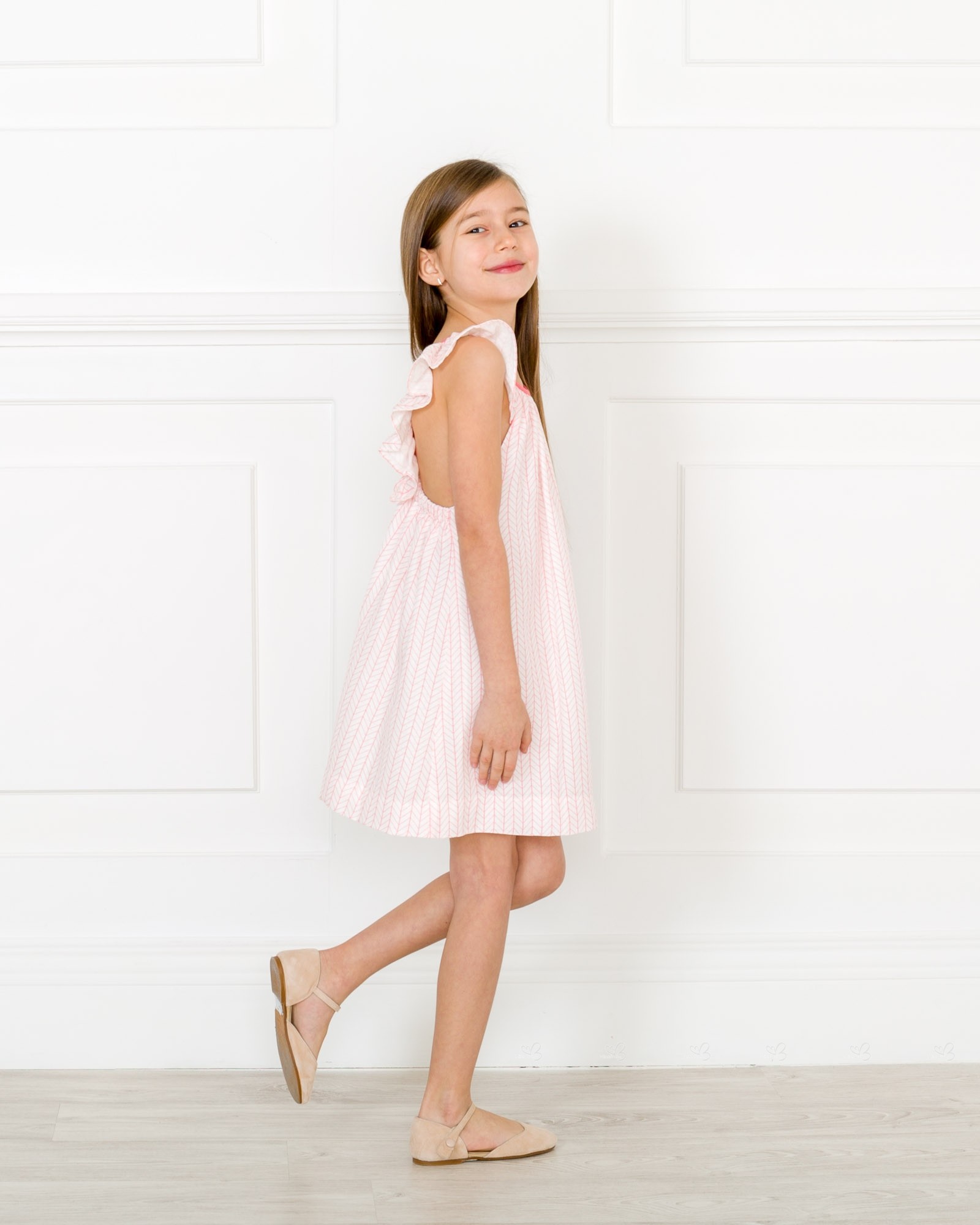 Ancar Spring-Summer 2018 Collection. Girls coral pink and white organic cotton dress.