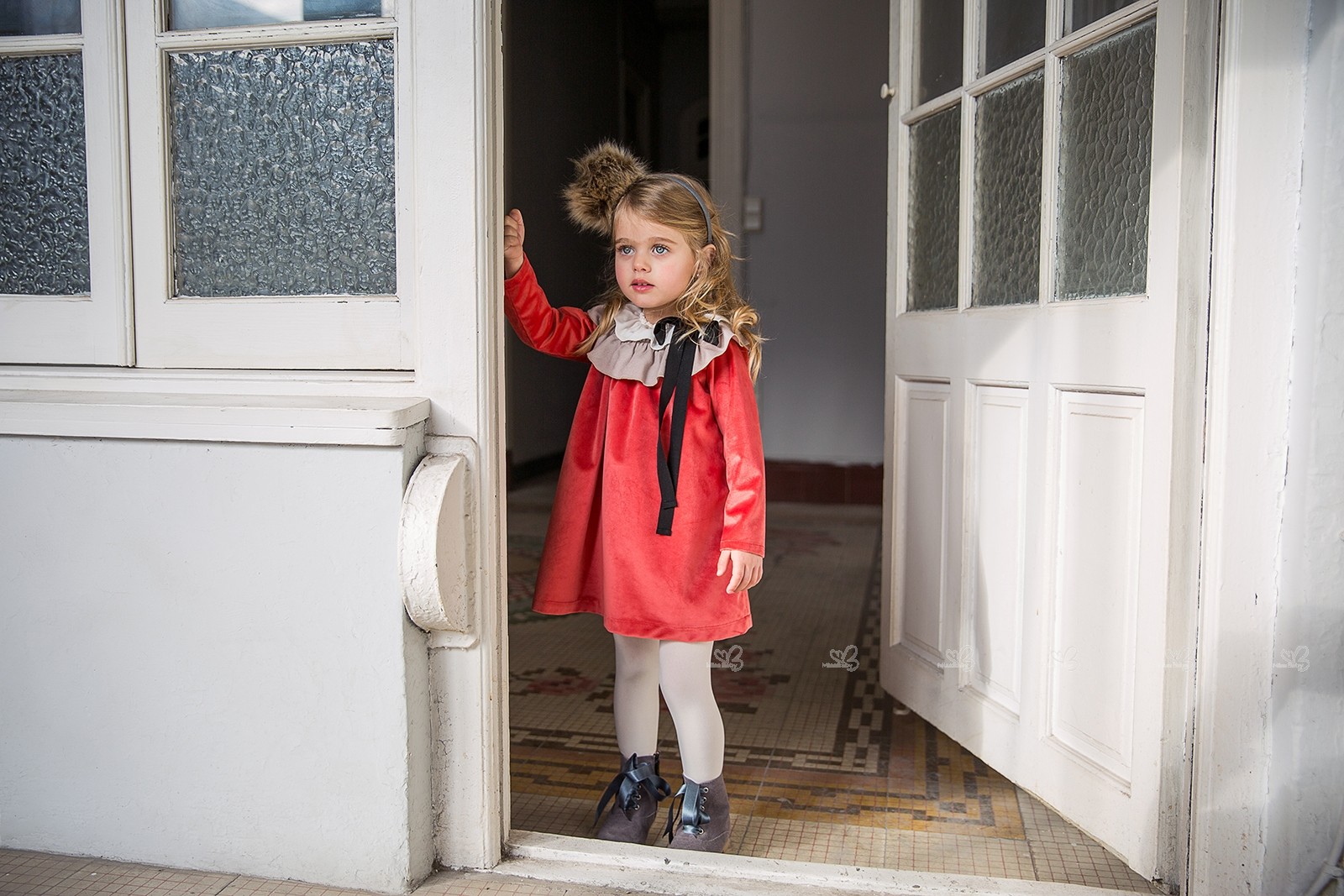 Rochy Autumn-Winter 2018/19 Collection. Girls coral velvet dress with ruffle collar.
