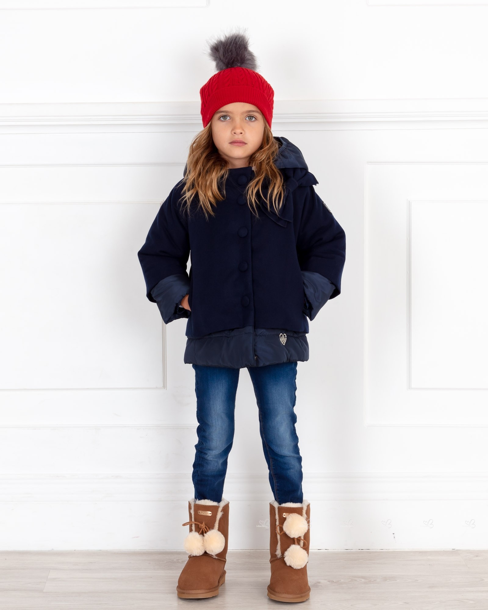 Dolce Petit Autumn-Winter 2018/19 Collection. Girls dark blue padded coat with hood.