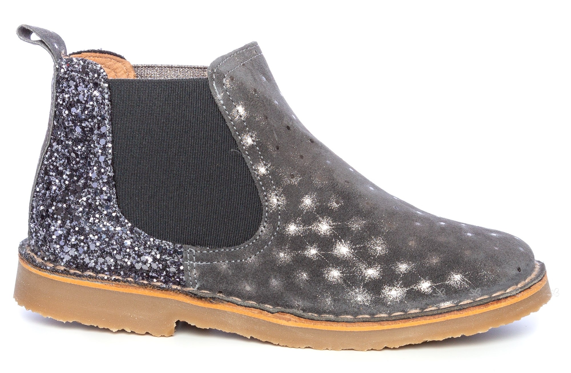 Girls Grey Suede & Glitter Boots with Silver Sparkly Polka Dot