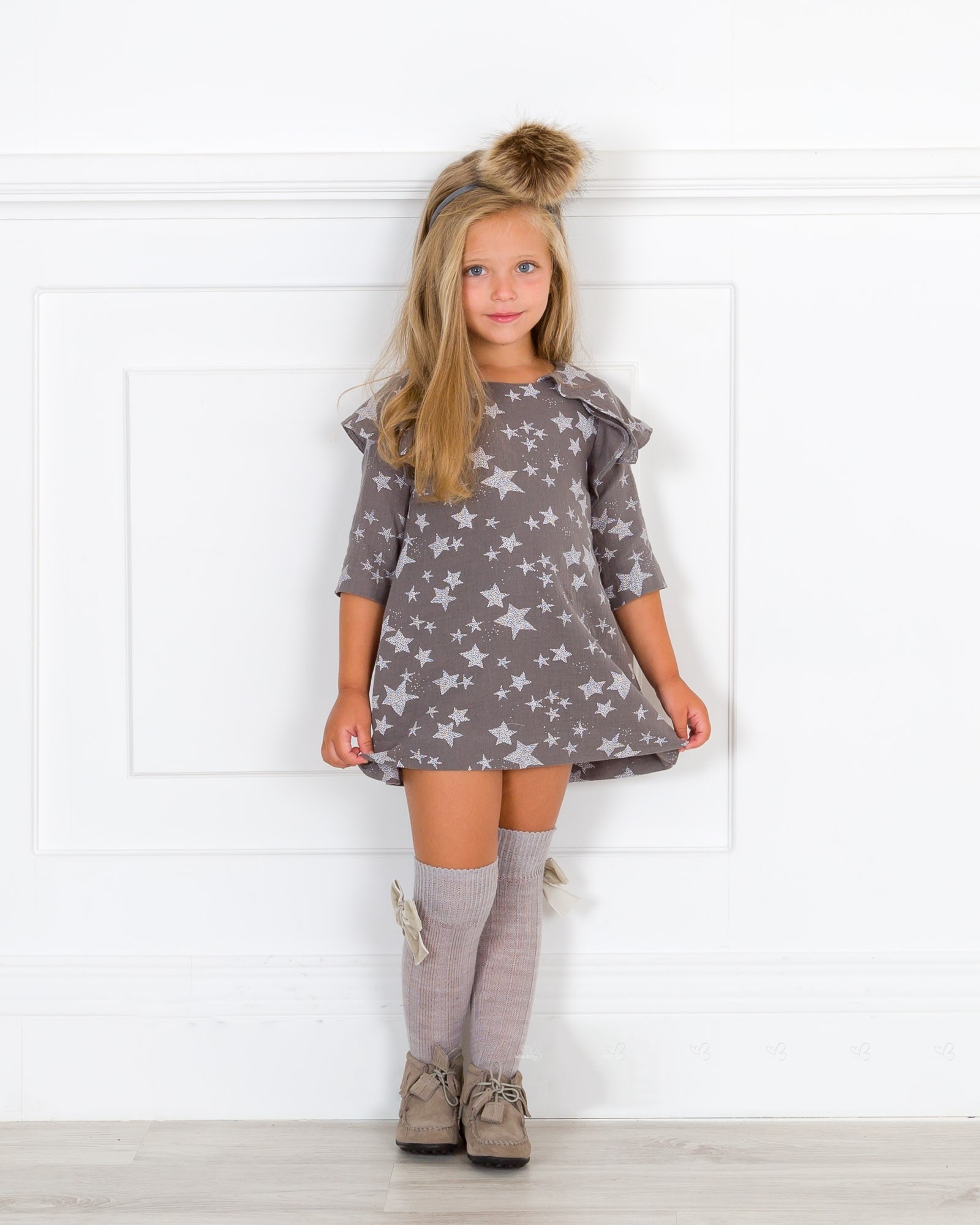 Ancar Autumn-Winter 2018/19 Collection. Girls grey and white star print cotton dress.