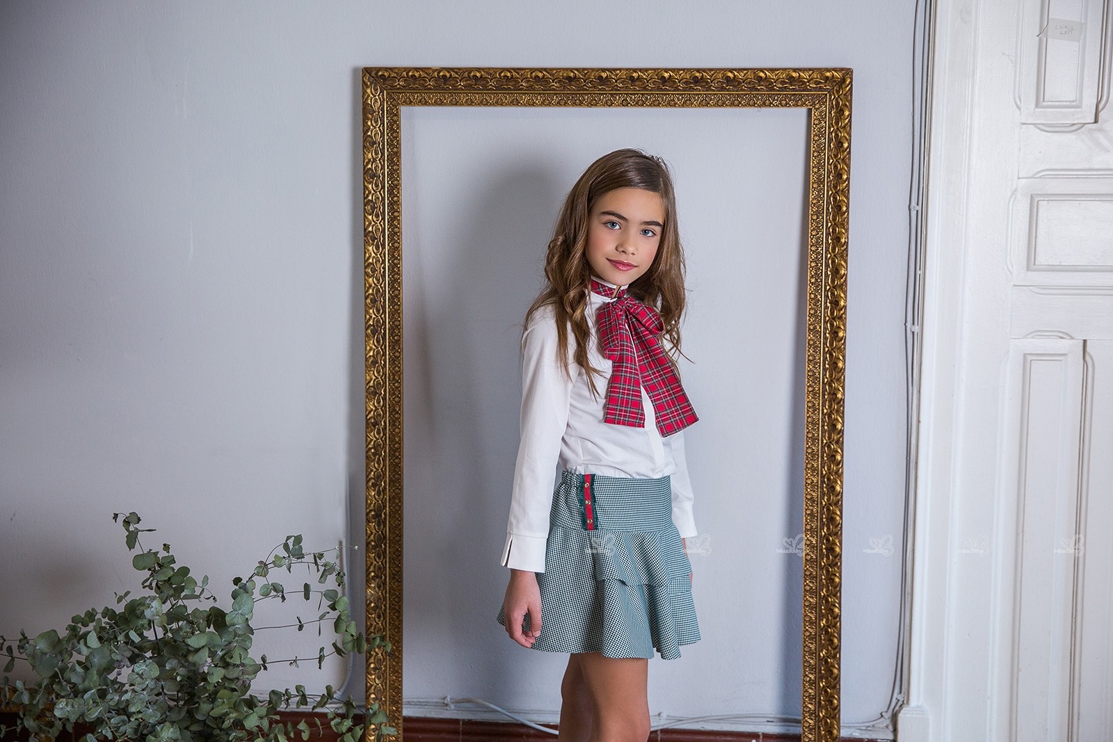 Rochy Autumn-Winter 2018/19 Collection. Girls off-white blouse and green skirt set.