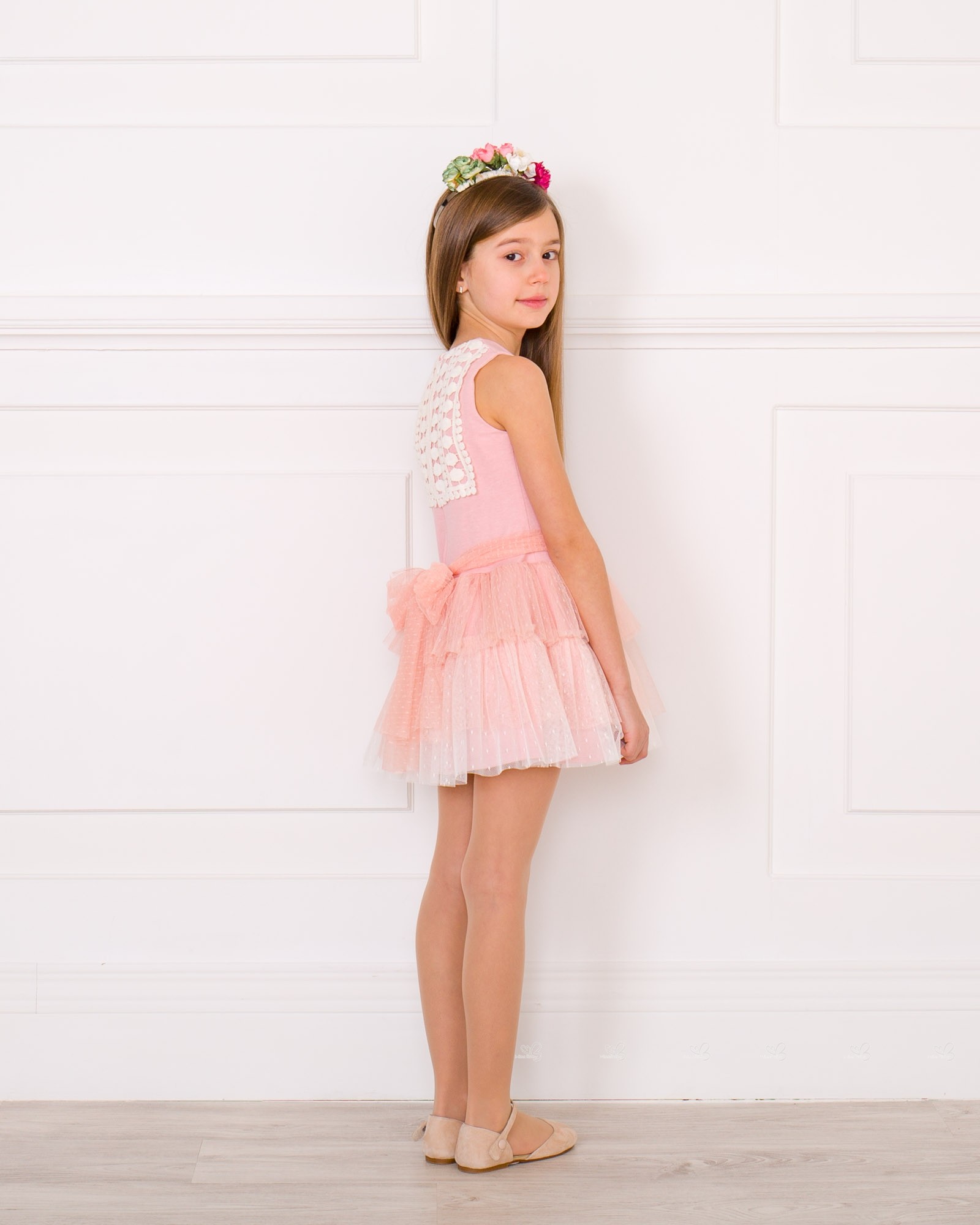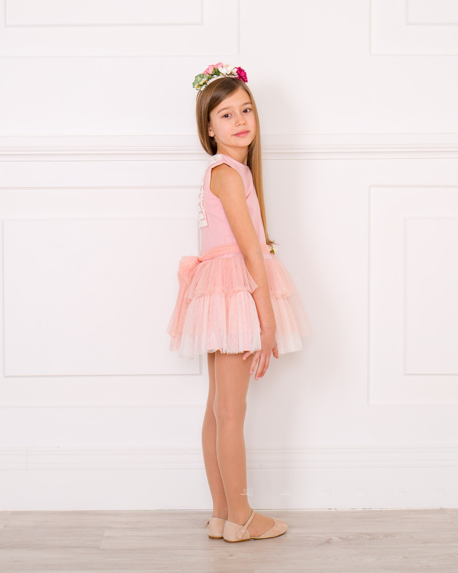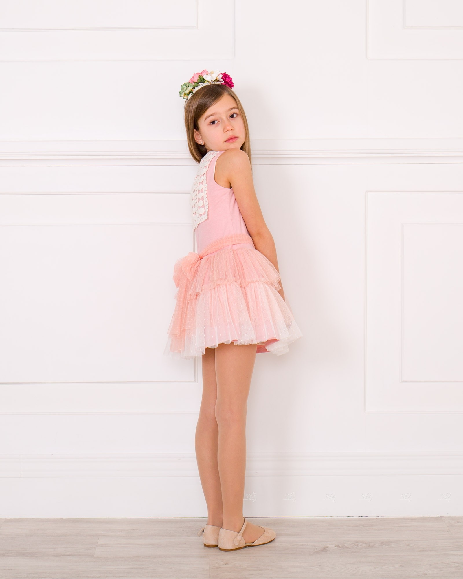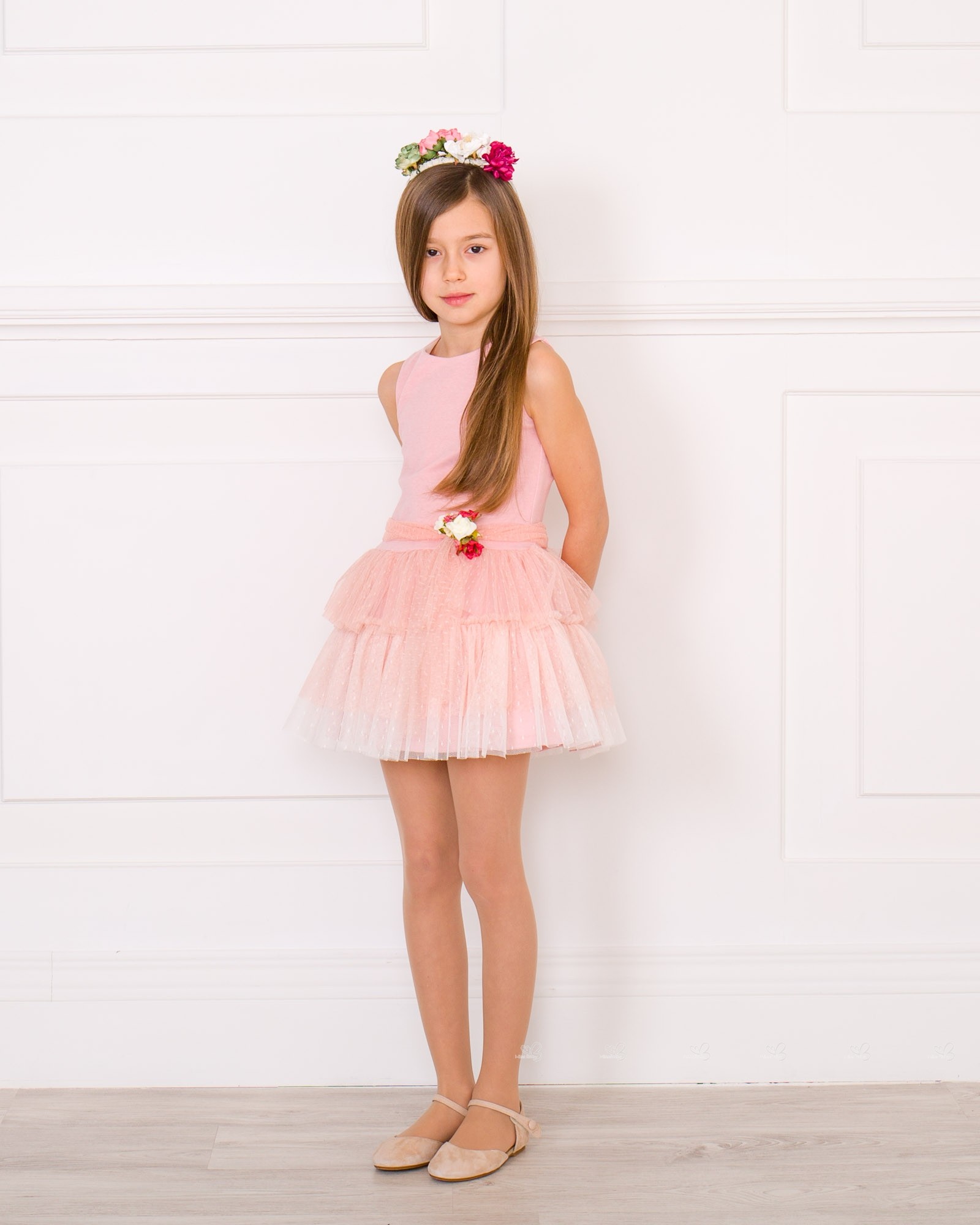 Lapeppa Spring-Summer 2018. Girls pale pink layered dress with tulle sash.