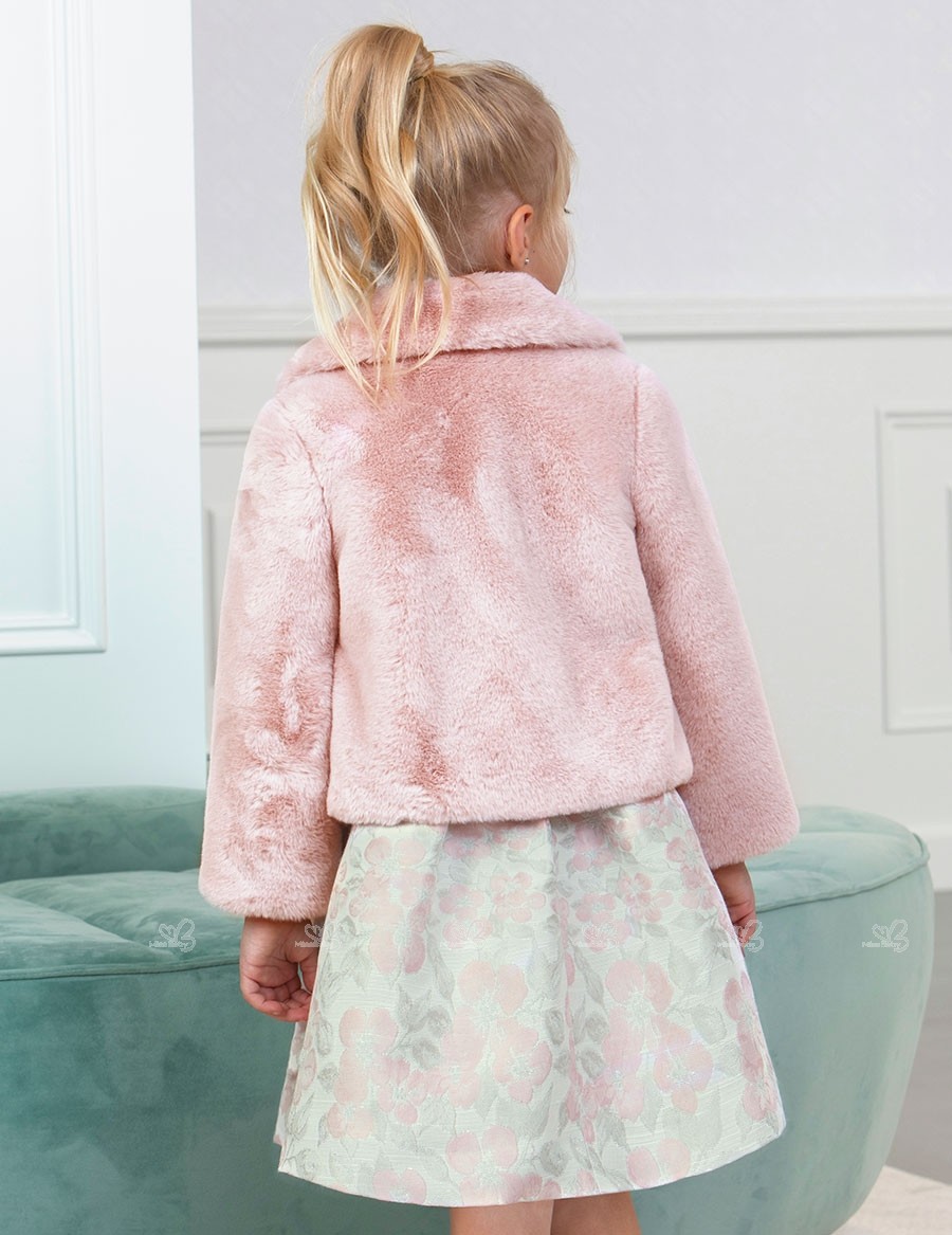 Abel & Lula Autumn-Winter 2019/20 Collection. Girls pale pink synthetic fur coat.