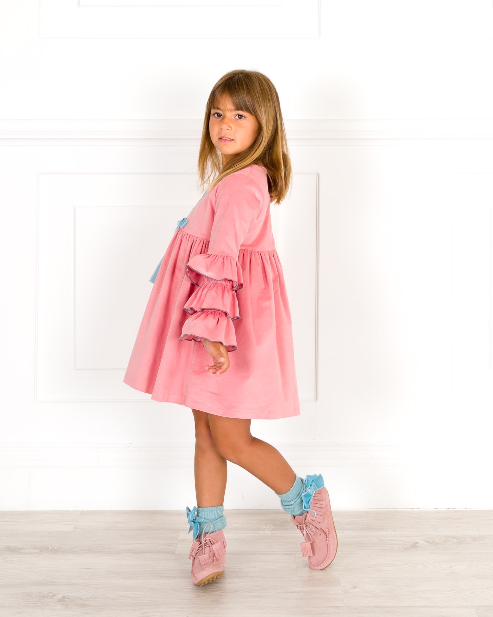 Rochy Autumn-Winter 2018/19 Collection. Girls pink ruffle dress and velvet bow.
