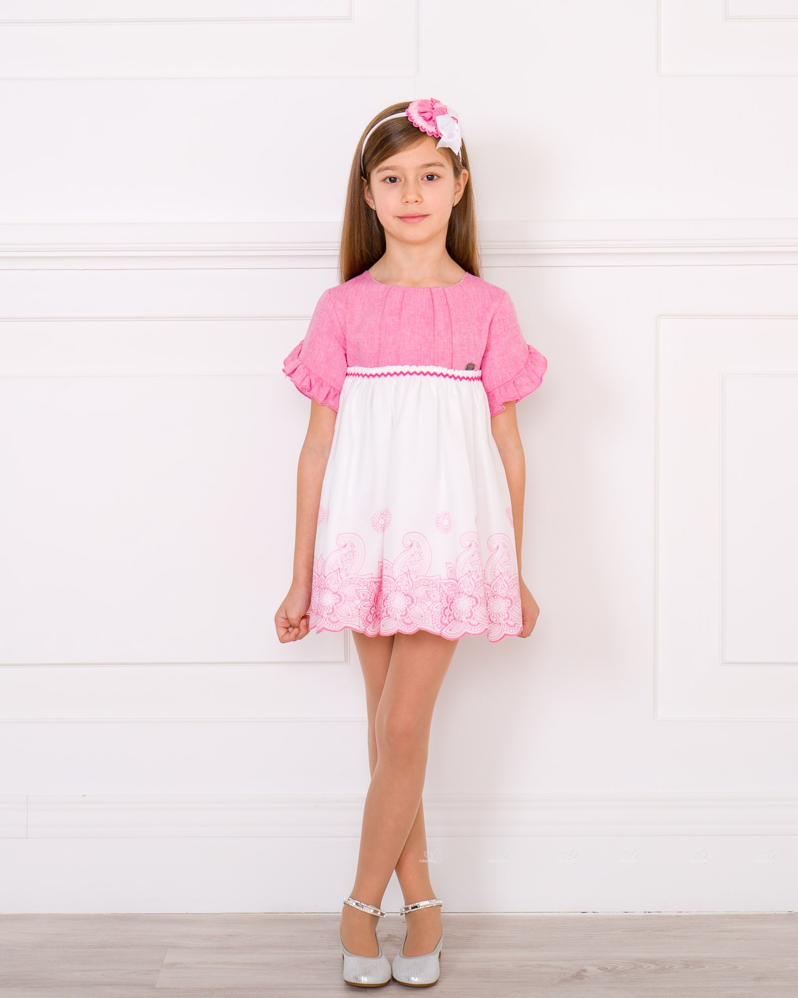 Dolce Petit Spring-Summer 2018. Girls pink and white embroidered dress.