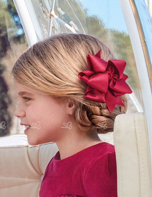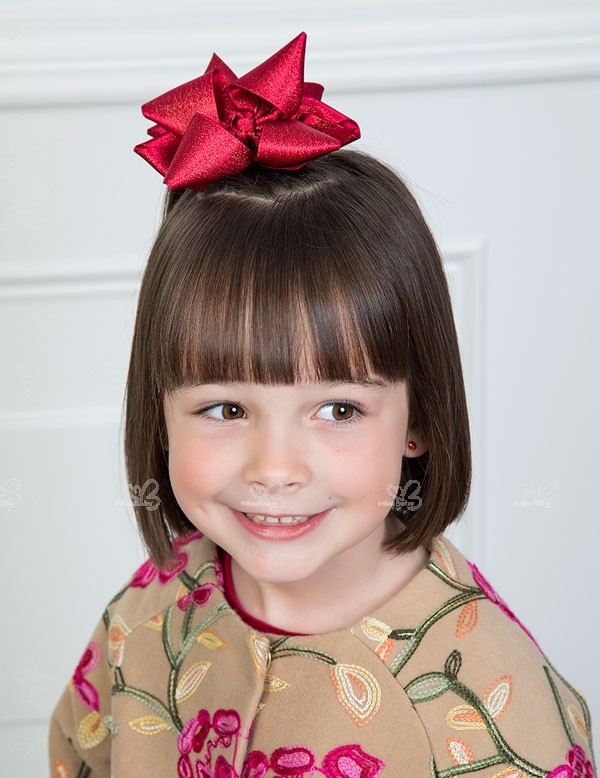 Abel & Lula Autumn-Winter 2019/20 Collection. Girls raspberry satin bow hair clip.