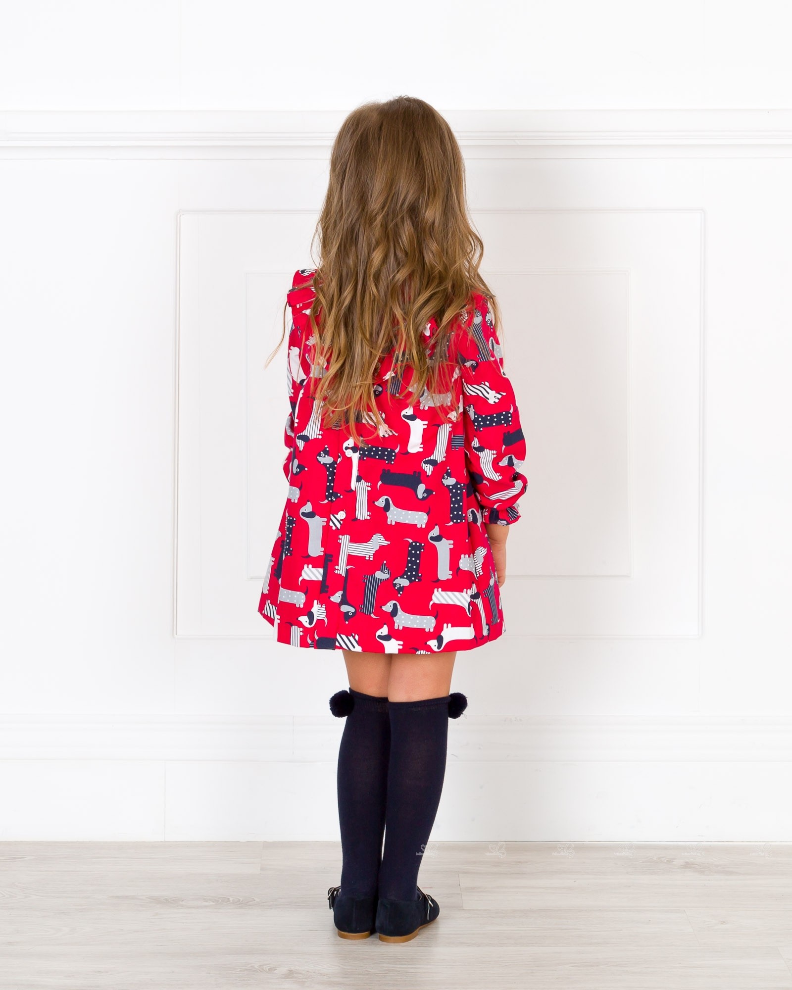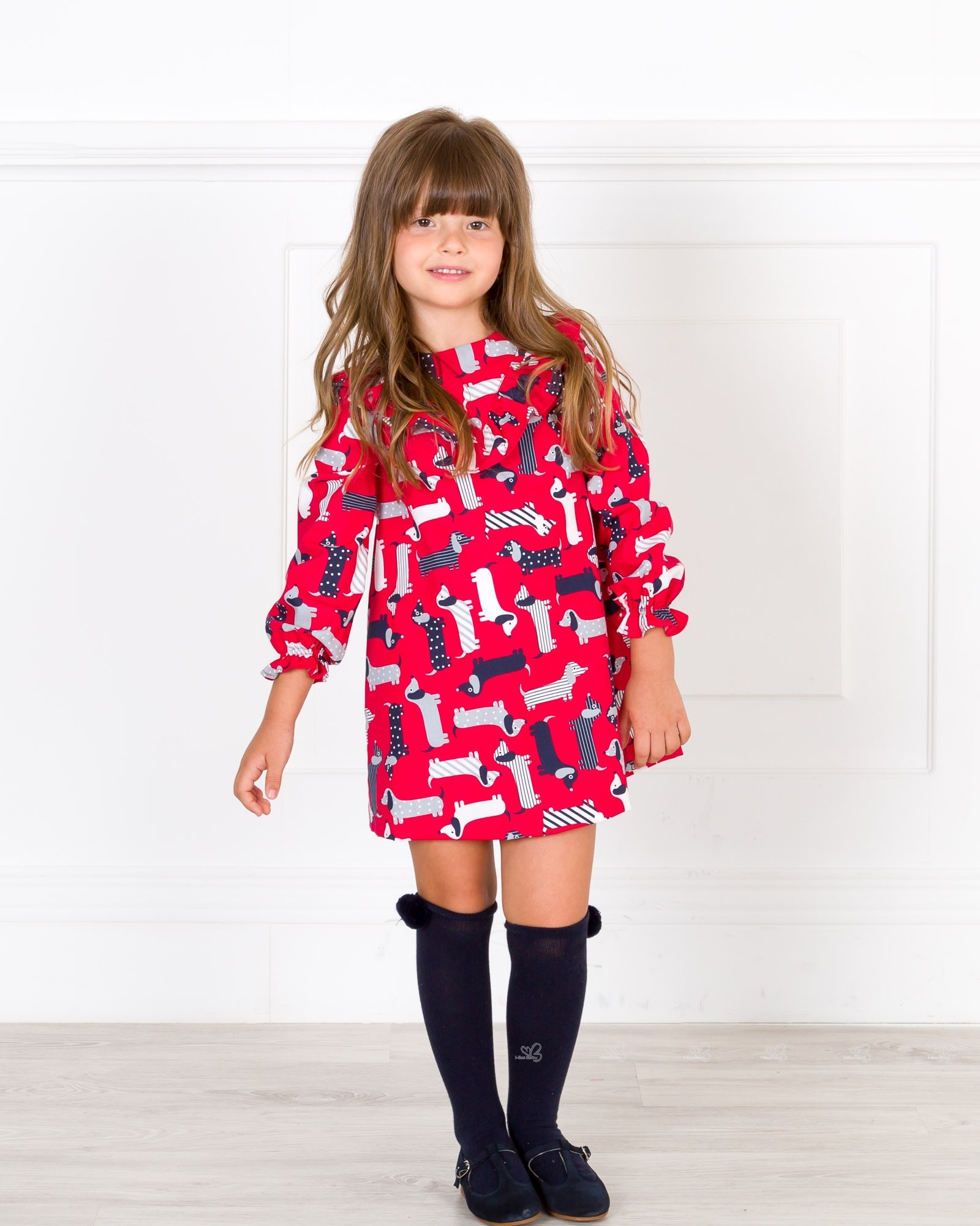 J.V. José Varón Autumn-Winter 2018/19 Collection. Girls red and navy dog print dress.
