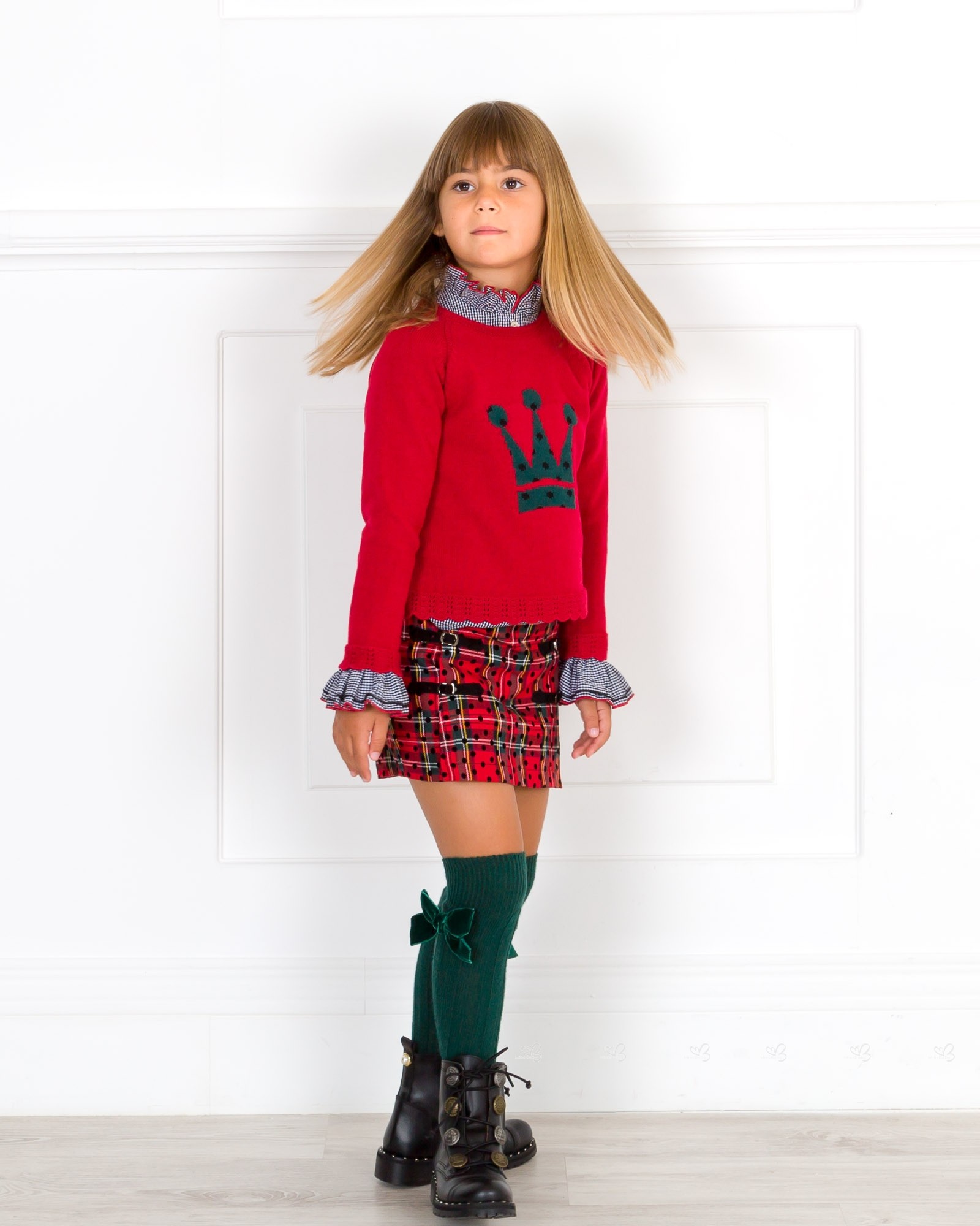 Eva Castro Baby Autumn-Winter 2018/19 Collection. Girls red tartan print 3 piece skort set.