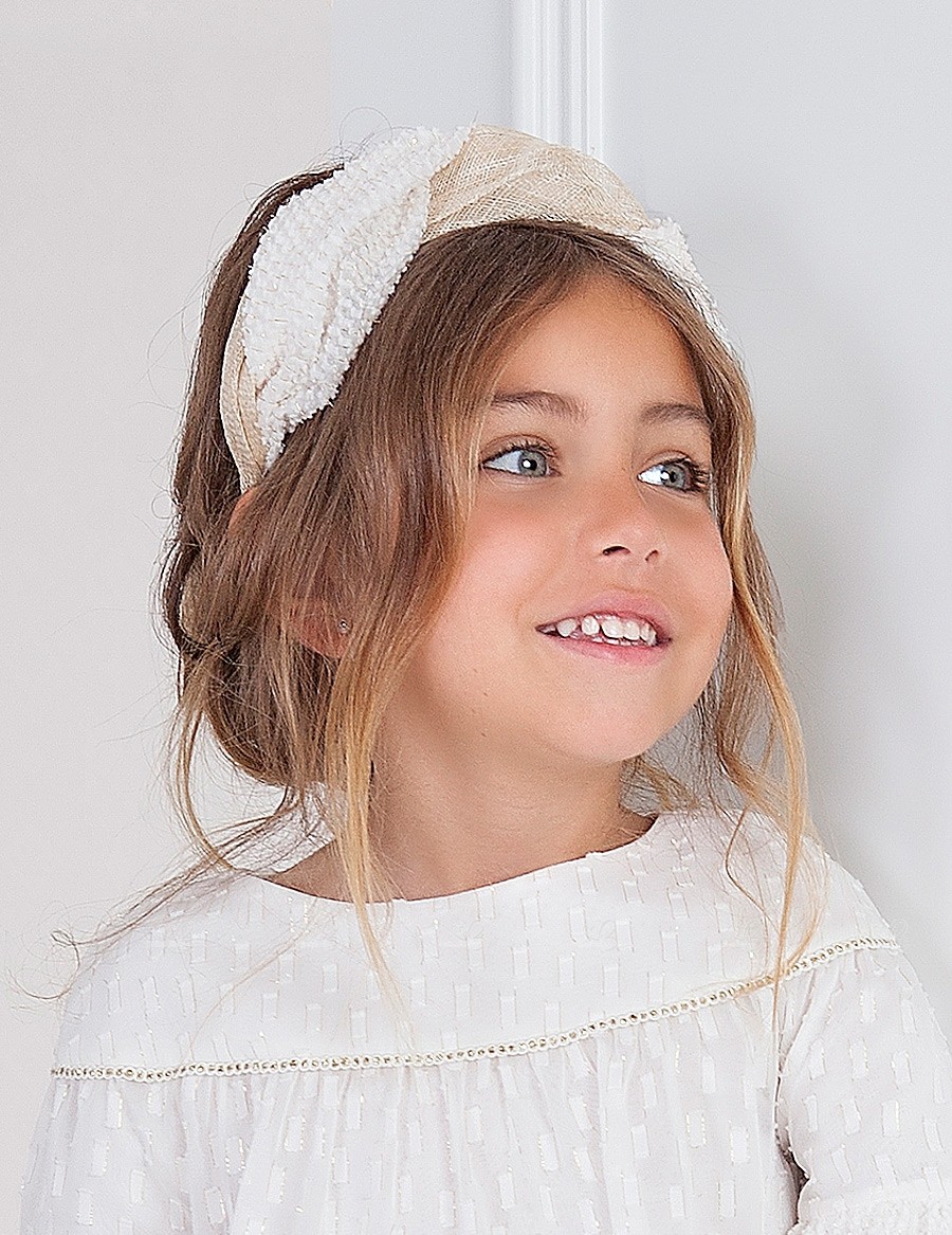 Abel & Lula Spring-Summer 2019 Collection. Girls white & beige hairband.