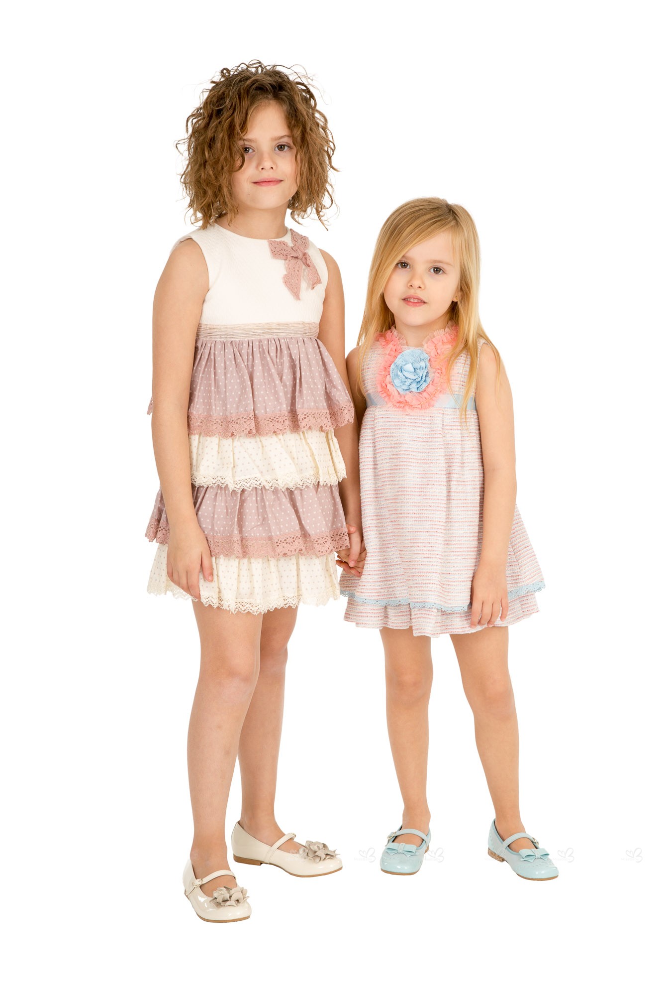 Propuesta primaveral para las niñas de la casa, vestido colección Cupcake elegante y divertida a la vez, en tonos crema y beige pastel, volantes estampado estrellitas, cierre con botones y forro interior.