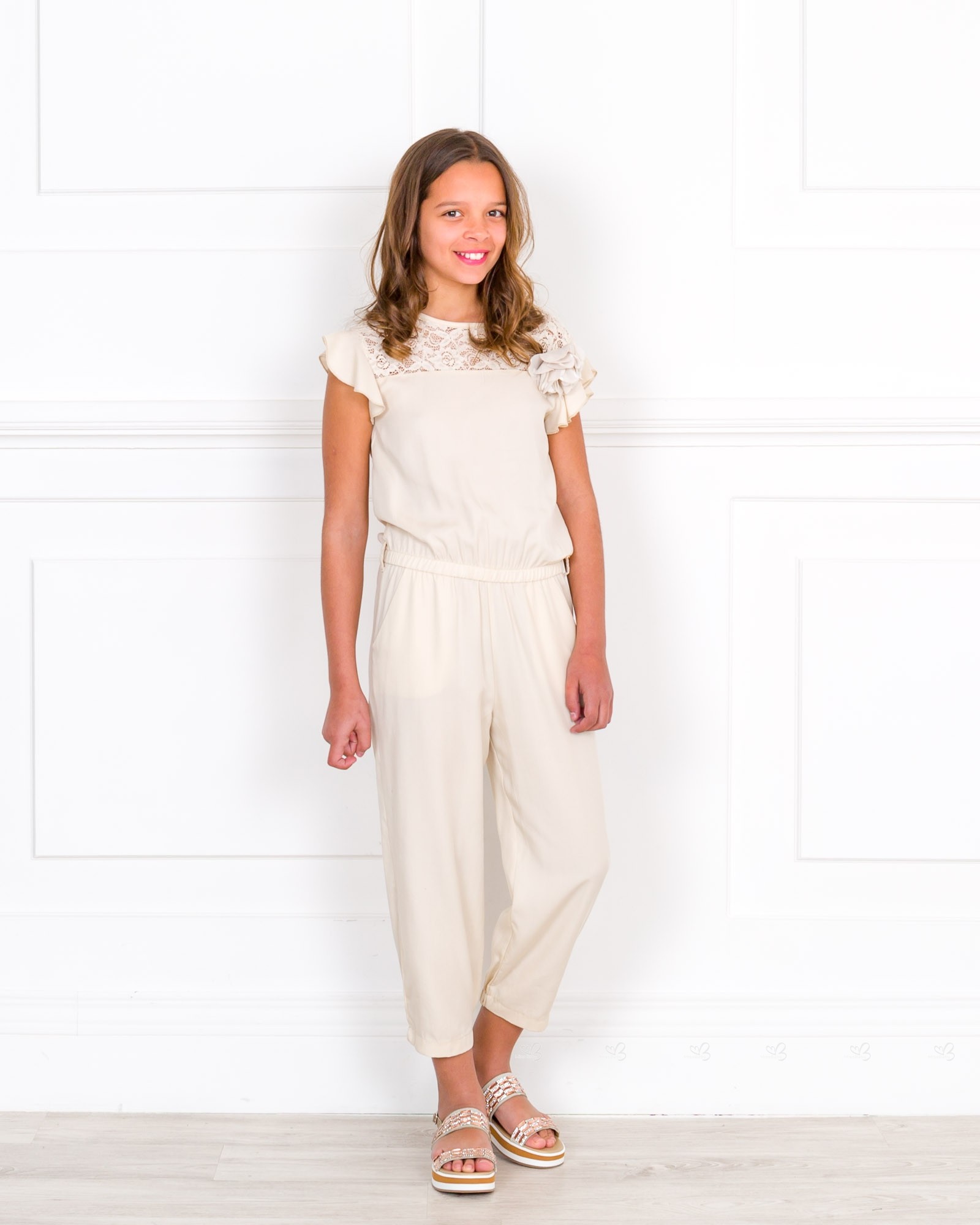 Mono Largo Niña Volante Manga Broche Flor & Guipur BeigeCódigo: 24830