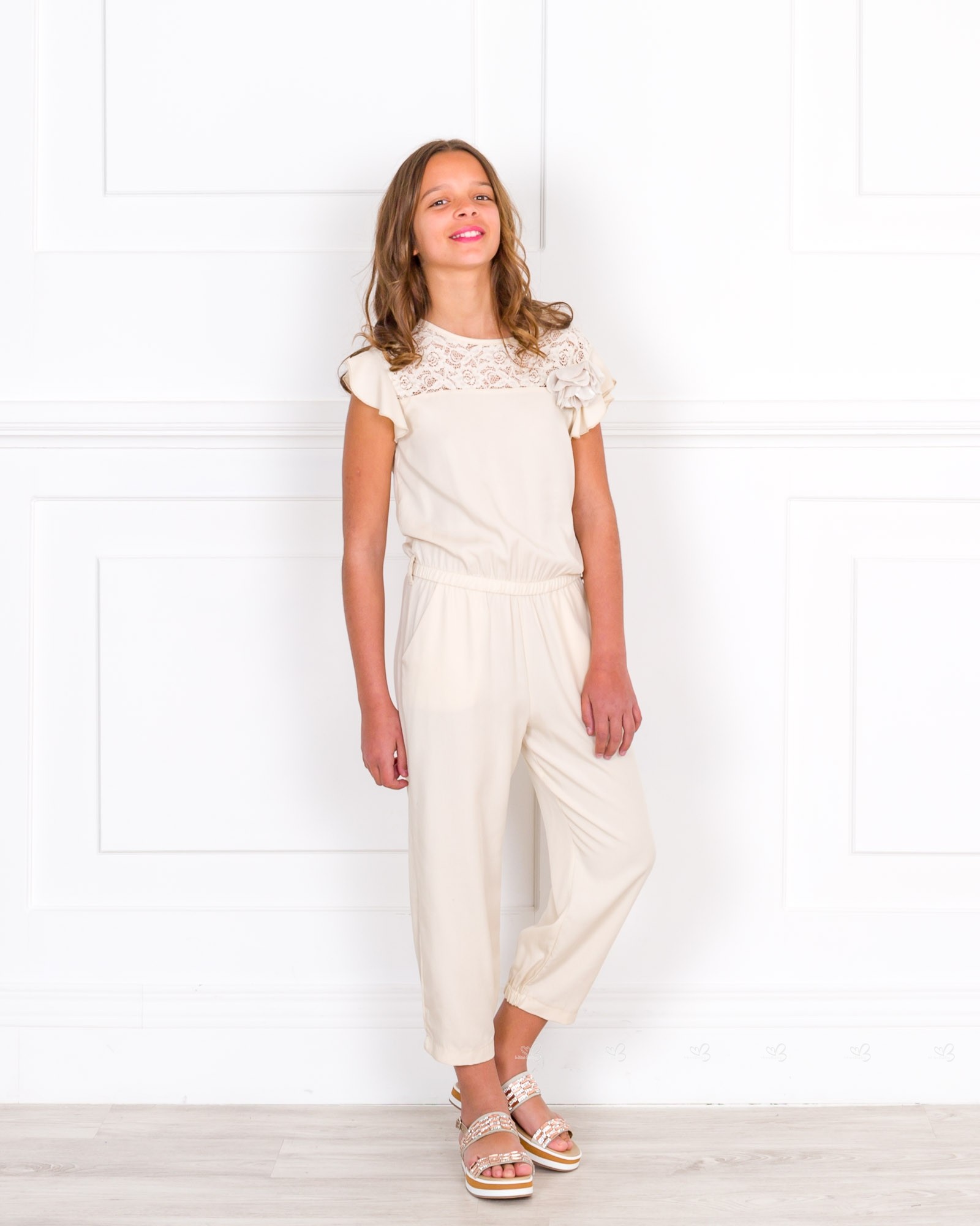 Mono Largo Niña Volante Manga Broche Flor & Guipur Beige
