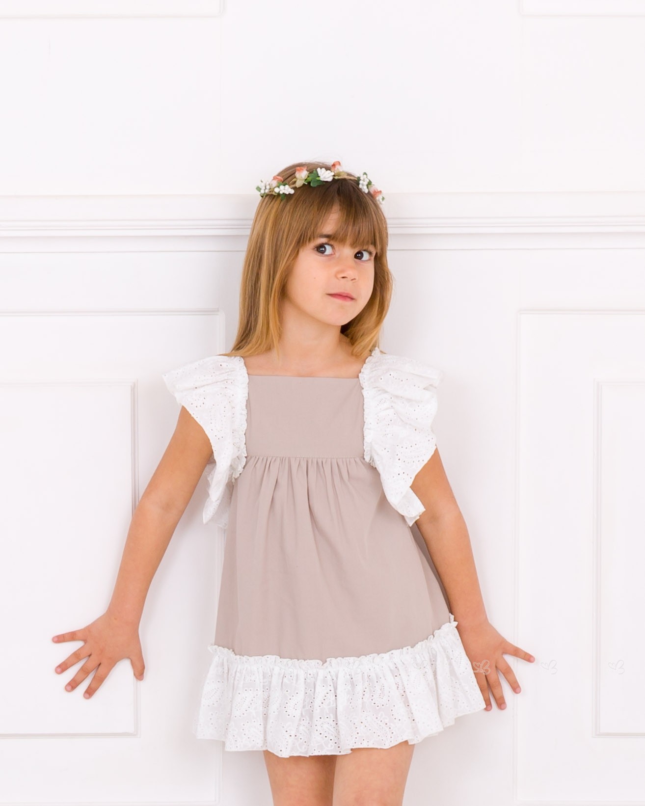 Vestido Niña Beige & Volante Puntilla BlancoCódigo: 20207