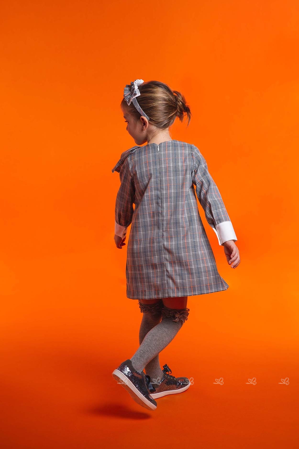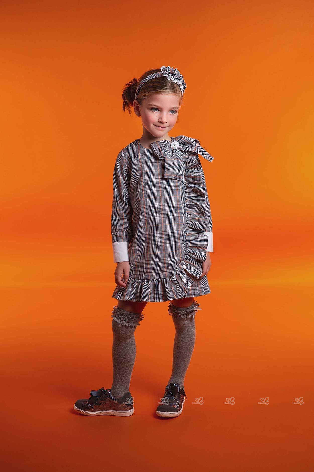 Vestido Niña Evasé Cuadro Príncipe de Gales Gris & VolanteCódigo: 39137