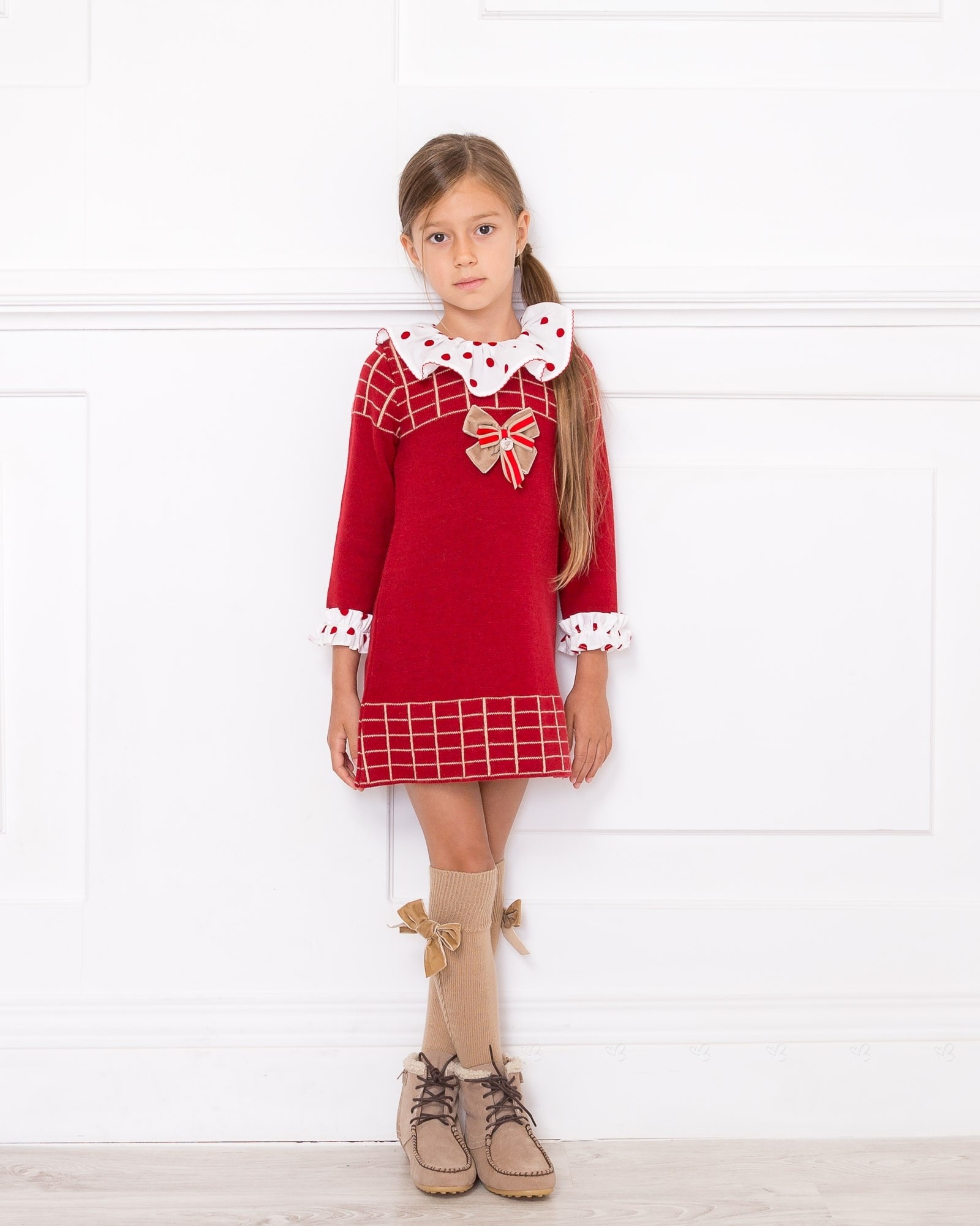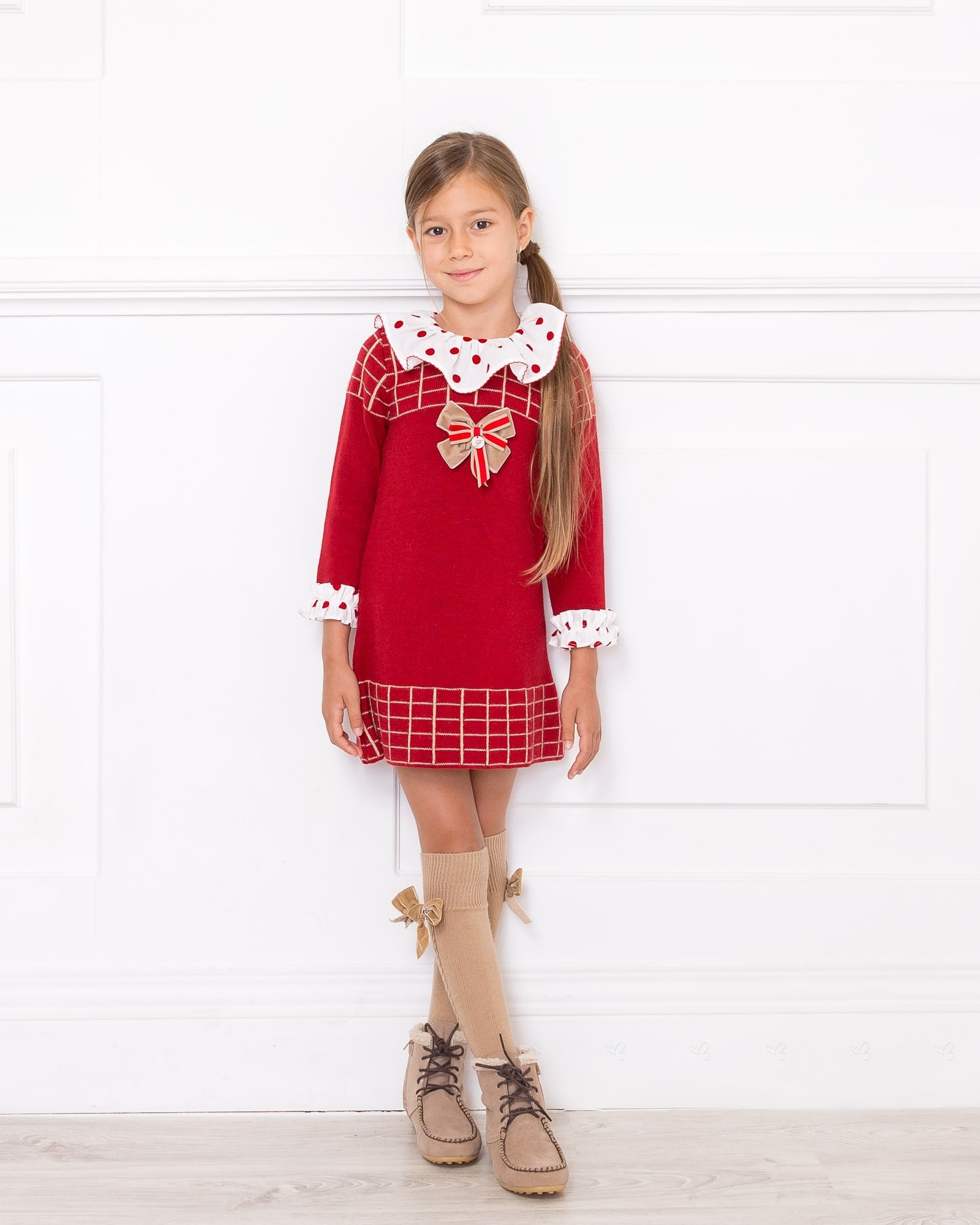 Vestido Punto Jacquard Cuello Volante Rojo & Blanco